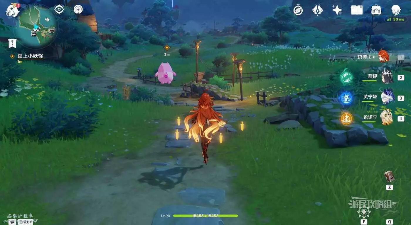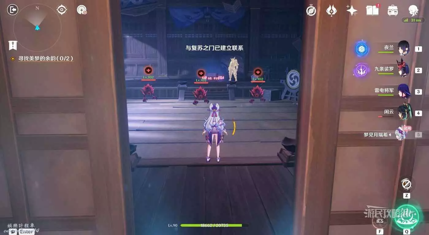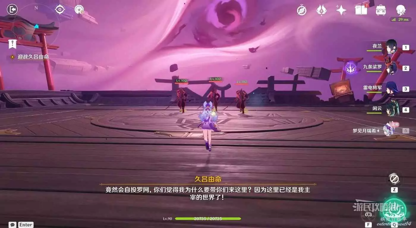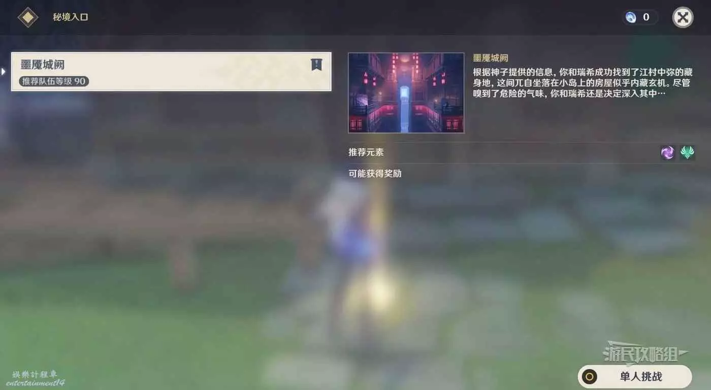 劇情結束後進入秘境。建議加入雷元素和風元素角色,儘量帶上至少一名高傷輸出和治療角色,或者準備好回血料理,秘境中會有機制扣血和BOSS戰鬥場景。除此之外,秘境中會有需要主角單獨戰鬥的場景,但所有配裝均為試用,元素會自動更換為雷,不用擔心。