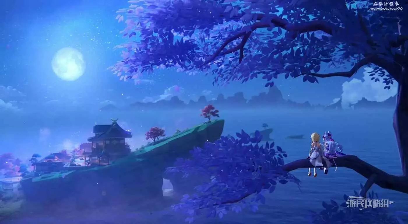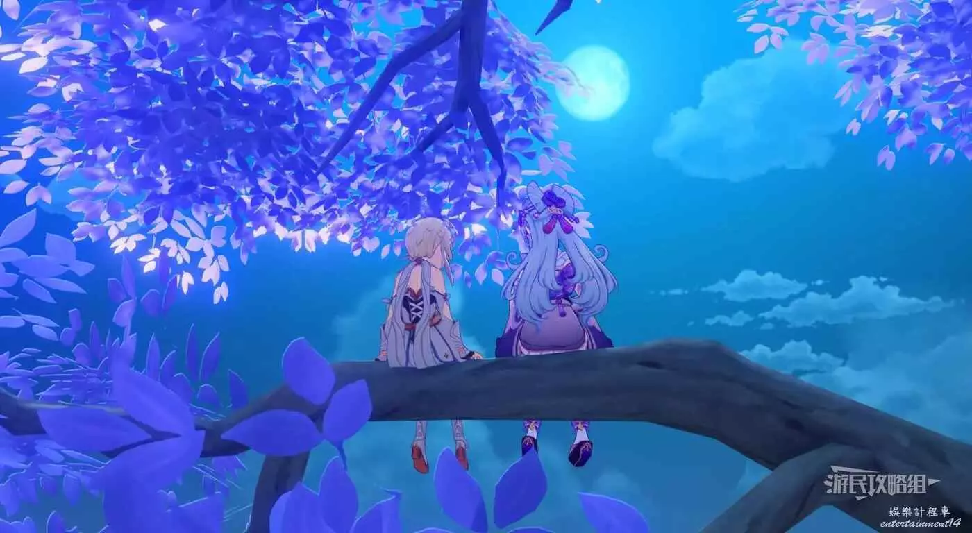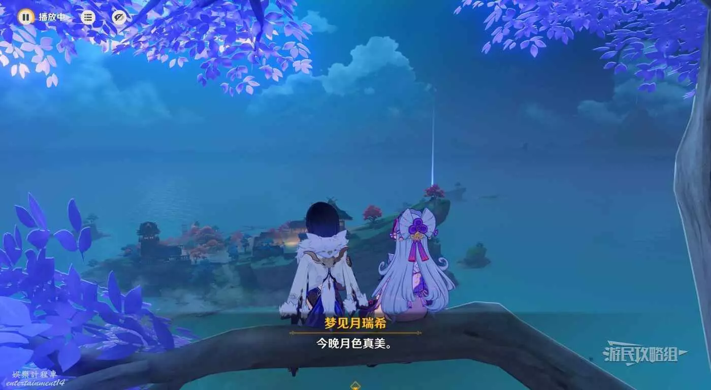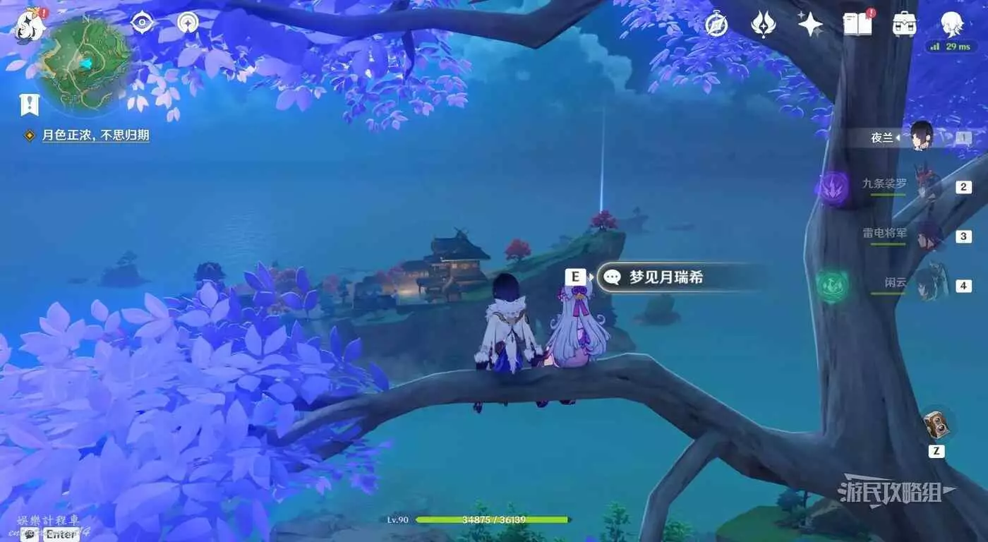 劇情結束後,任務完成,只要晚上沒過,沒有傳送,就一直可以與瑞希在下圖所示位置看月亮,也可以切換角色重新坐過來。