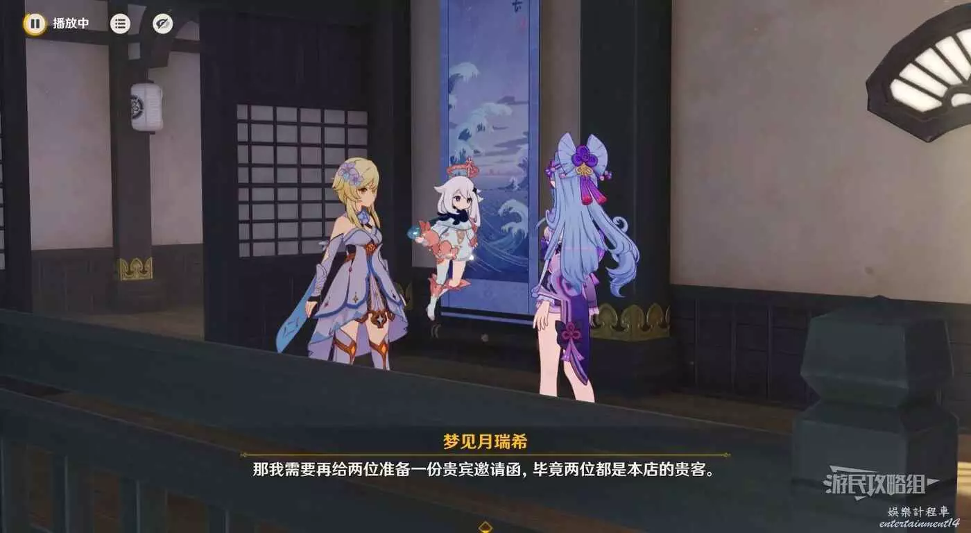 與派蒙對話後,繼續觸發對話。獲得【秋沙錢湯貴賓邀請函】。
