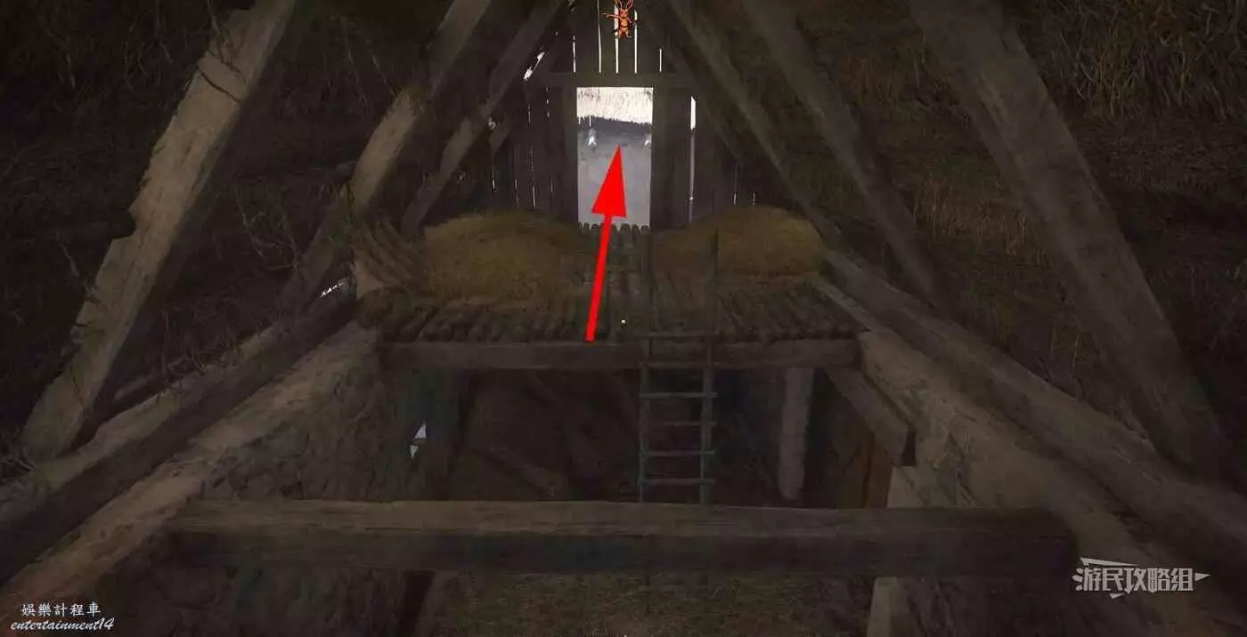 首先進入裁縫鋪後面的谷倉,爬上谷倉的梯子(管制區域)。