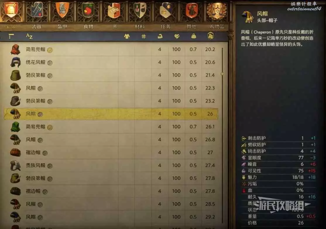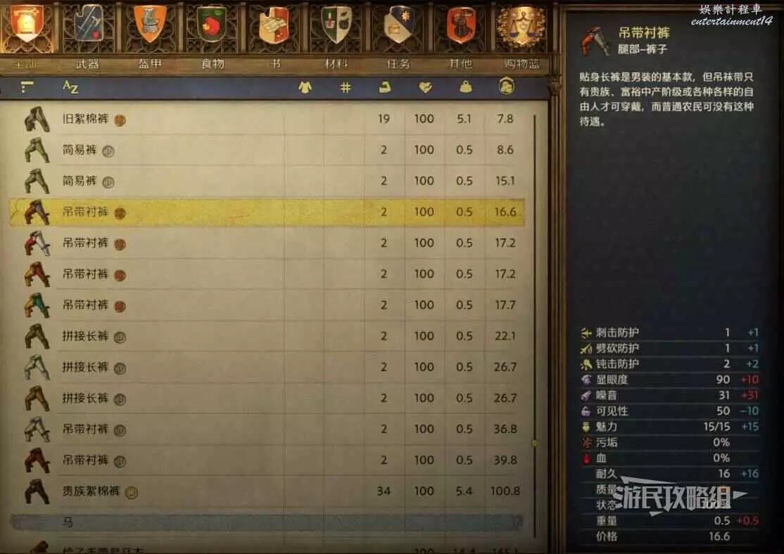 服裝不能包含盔甲,無需在每個裝備欄位中都戴上裝備,但必須要穿上【大衣】、【褲子或襯褲】和【鞋】。其他衣物可有可無,但裝備之後可以幫助更快提升魅力值(帽子、兜帽、手套等)。選中物品欄中的裝備,按【方向鍵-左/十字鍵-左】可以顯示該部位的魅力值。