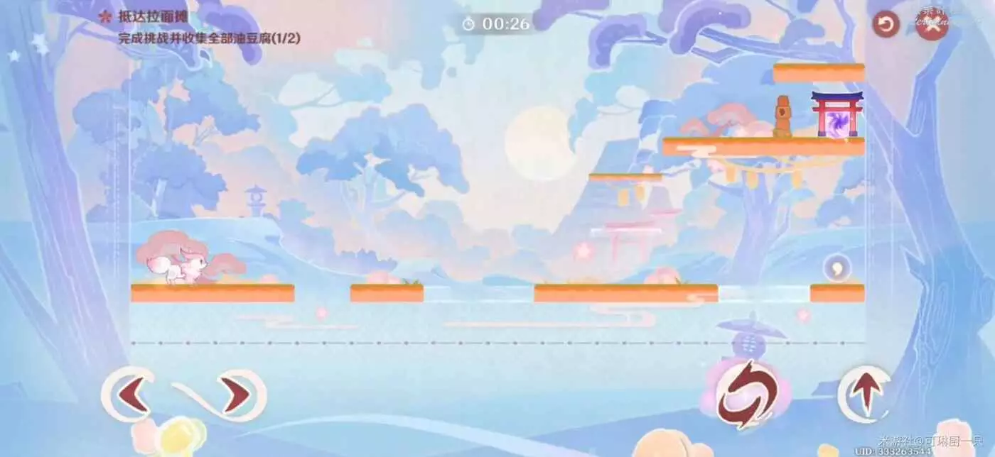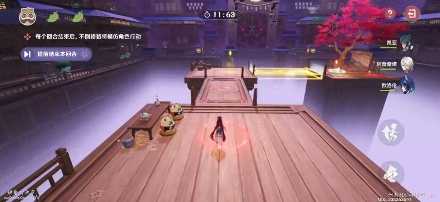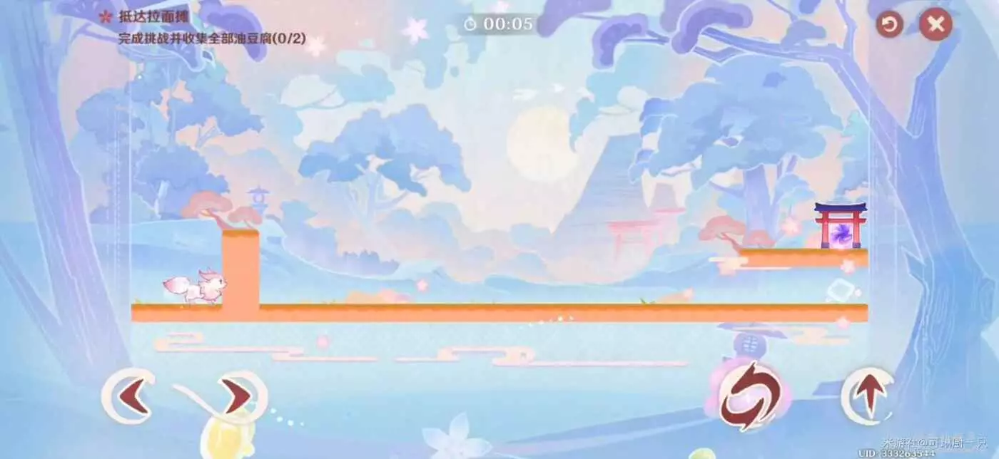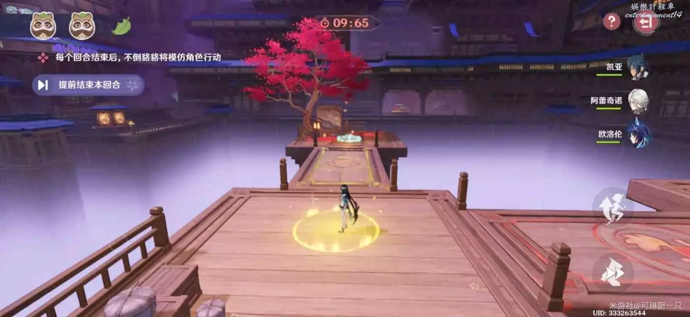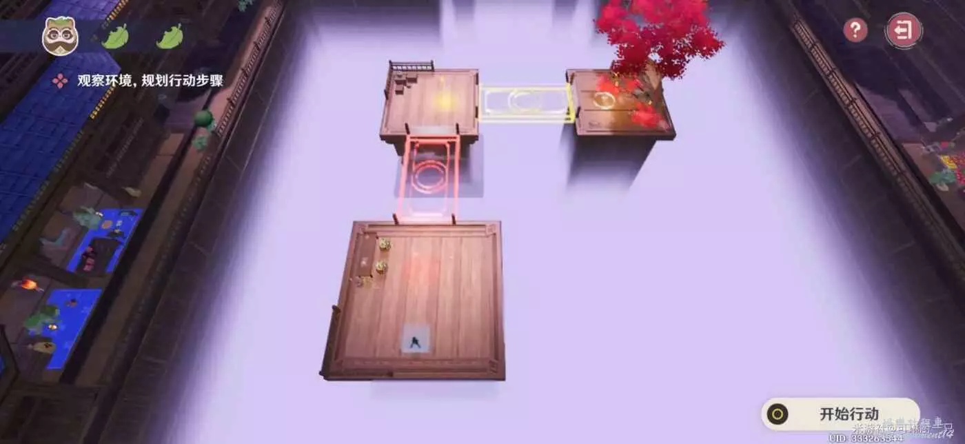 在這一個關卡中,不倒貉貉會複製角色的動作,因此旅行者要把控好技巧,比如走到圓形機關上就不動了(或者直接提前停止計時)、第二回合預留好走到終點的時間。