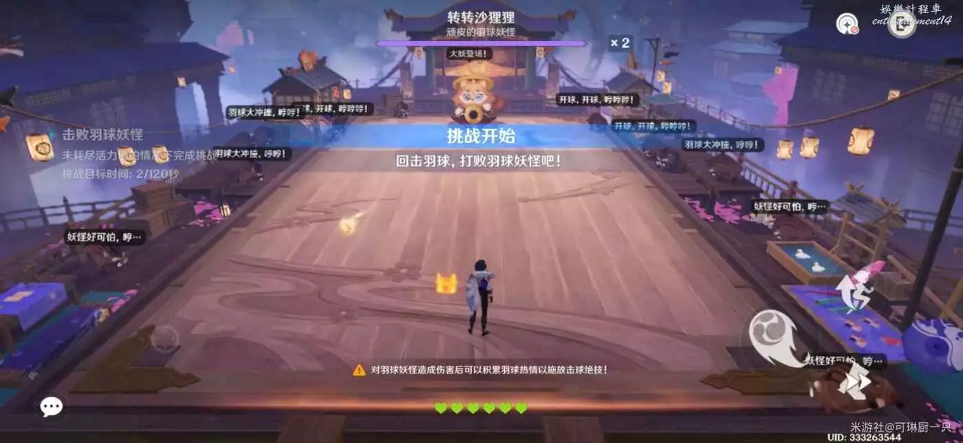 角色初始有6點活力值,每受到羽球、彈幕攻擊一次,都會減少一點活力值。活力值降為0後,關卡結束,但會錯過某些獎勵。獲取活力多多可以增加1點活力值,幫助擊敗妖怪,完美通關。