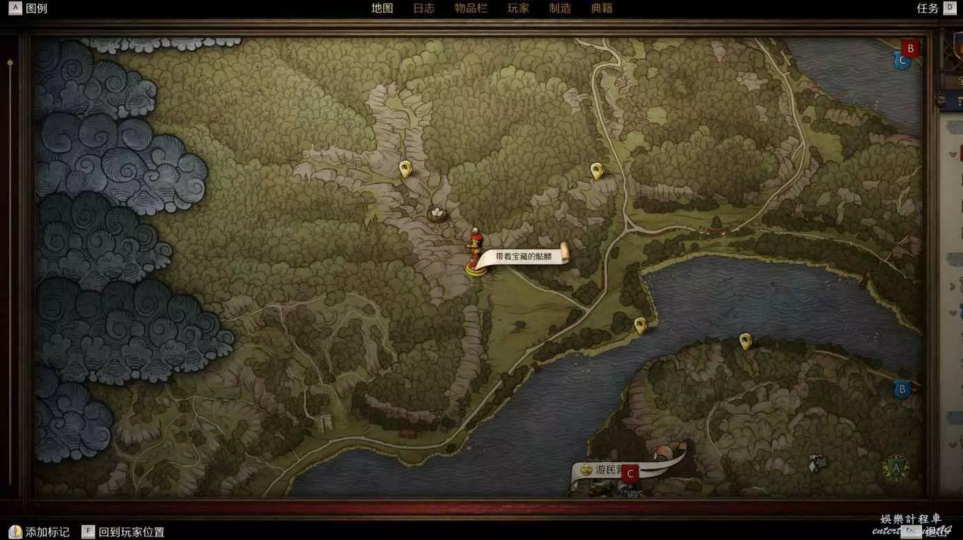 首先這是寶藏的位置,事件點叫帶著寶藏的骷髏