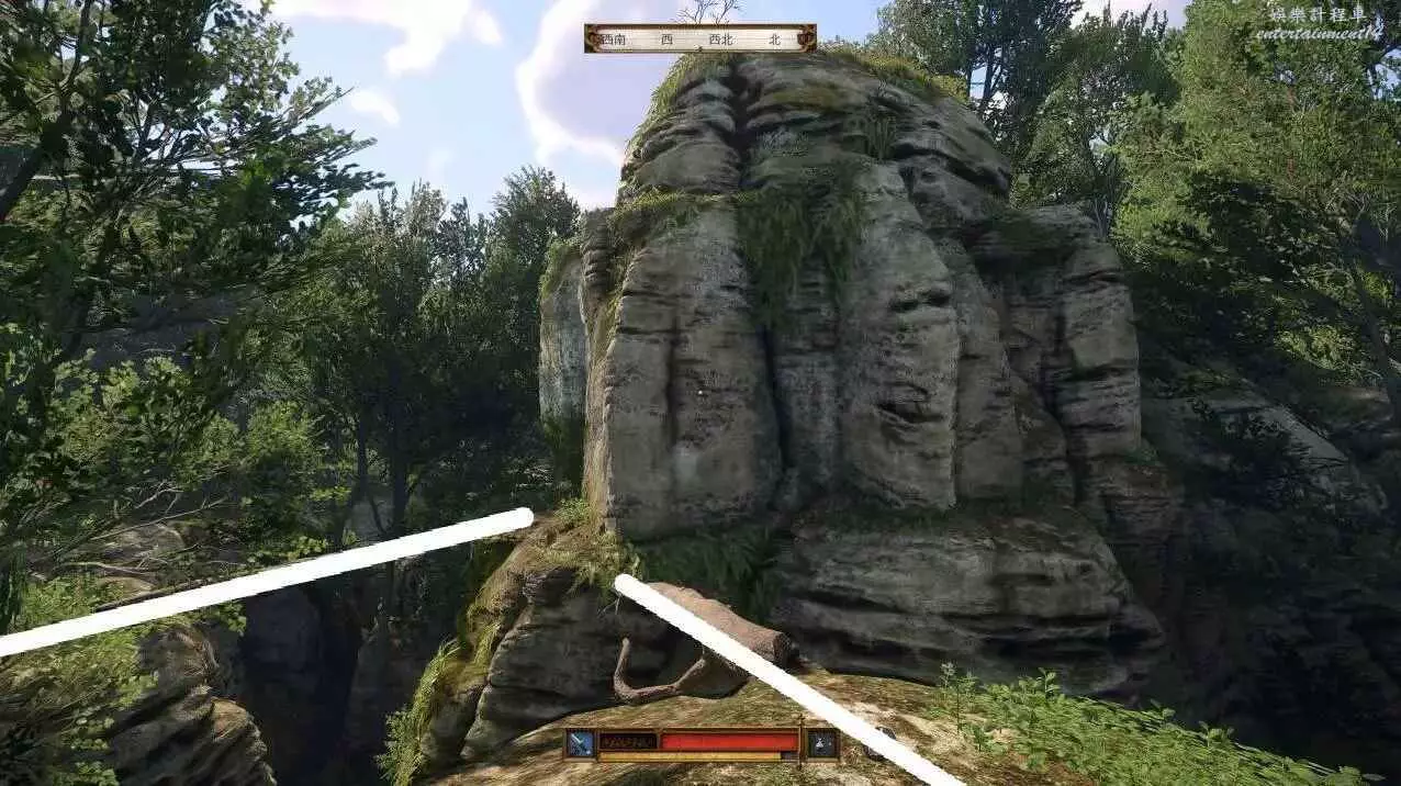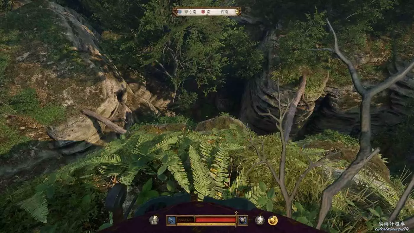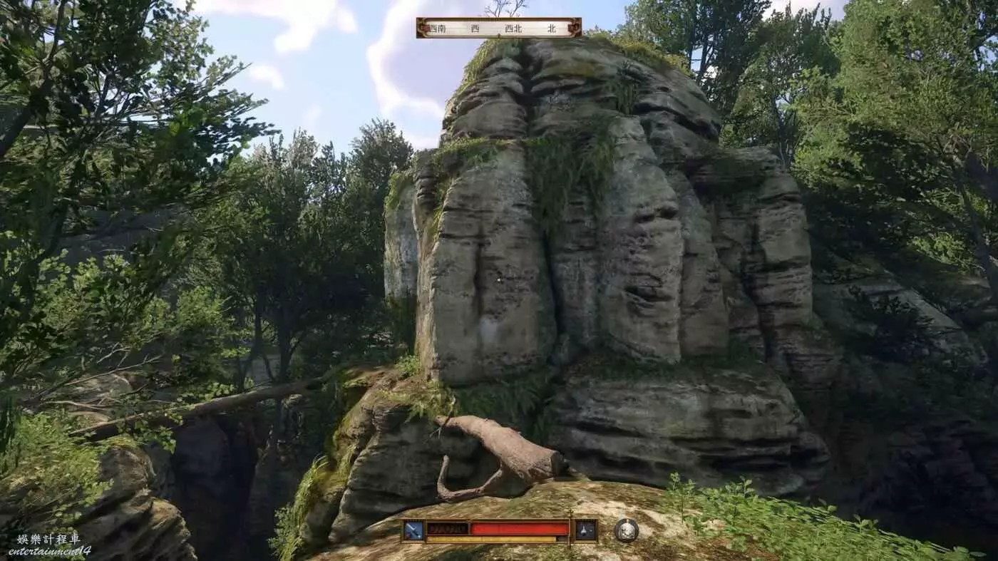 上面拍照的一根獨木橋的方向可以看見一個營地和一根倒下的樹幹砸在石柱上,契合藏寶圖的指示