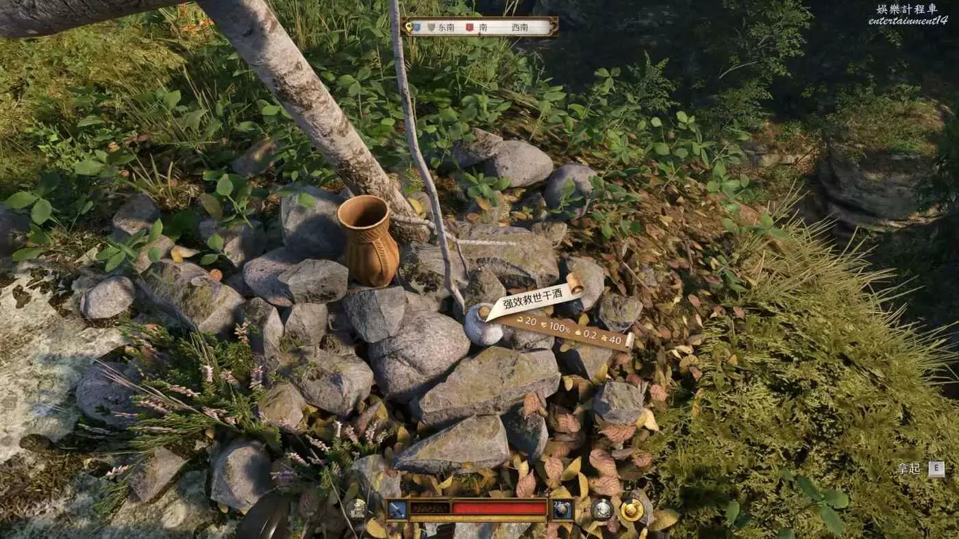 根據地圖指示應該就在右側樹幹旁邊的寬大石柱上