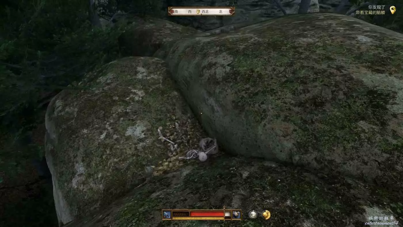 跳過去後提示發現了事件點拿著寶藏的骷髏