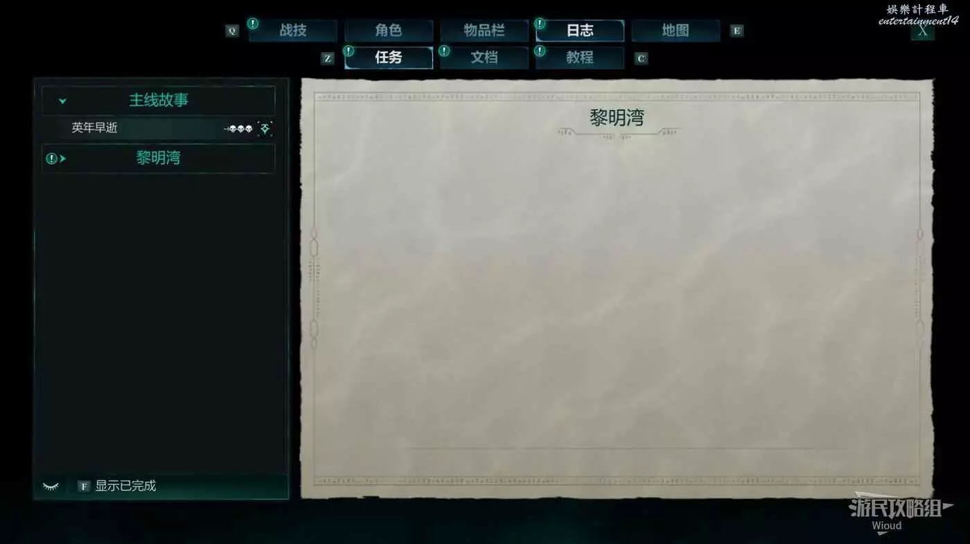 在日誌方面,我們可以看到目前接取的所有主支線任務,開局以來收集的所有重要文檔與遊戲本身的百科。