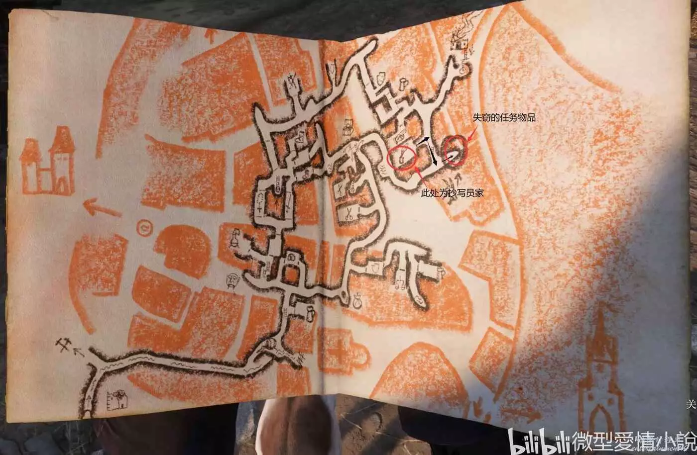 如果你不喜歡探索地下通道或者有幽閉恐懼症的話,推薦直接從我標記的抄寫員他家(我做任務的時候交任務的辛德爾大師也在他家,回來交也很方便)下地窖開門,往南再往東就可以找到書和星盤了,直接原路返回交任務即可。