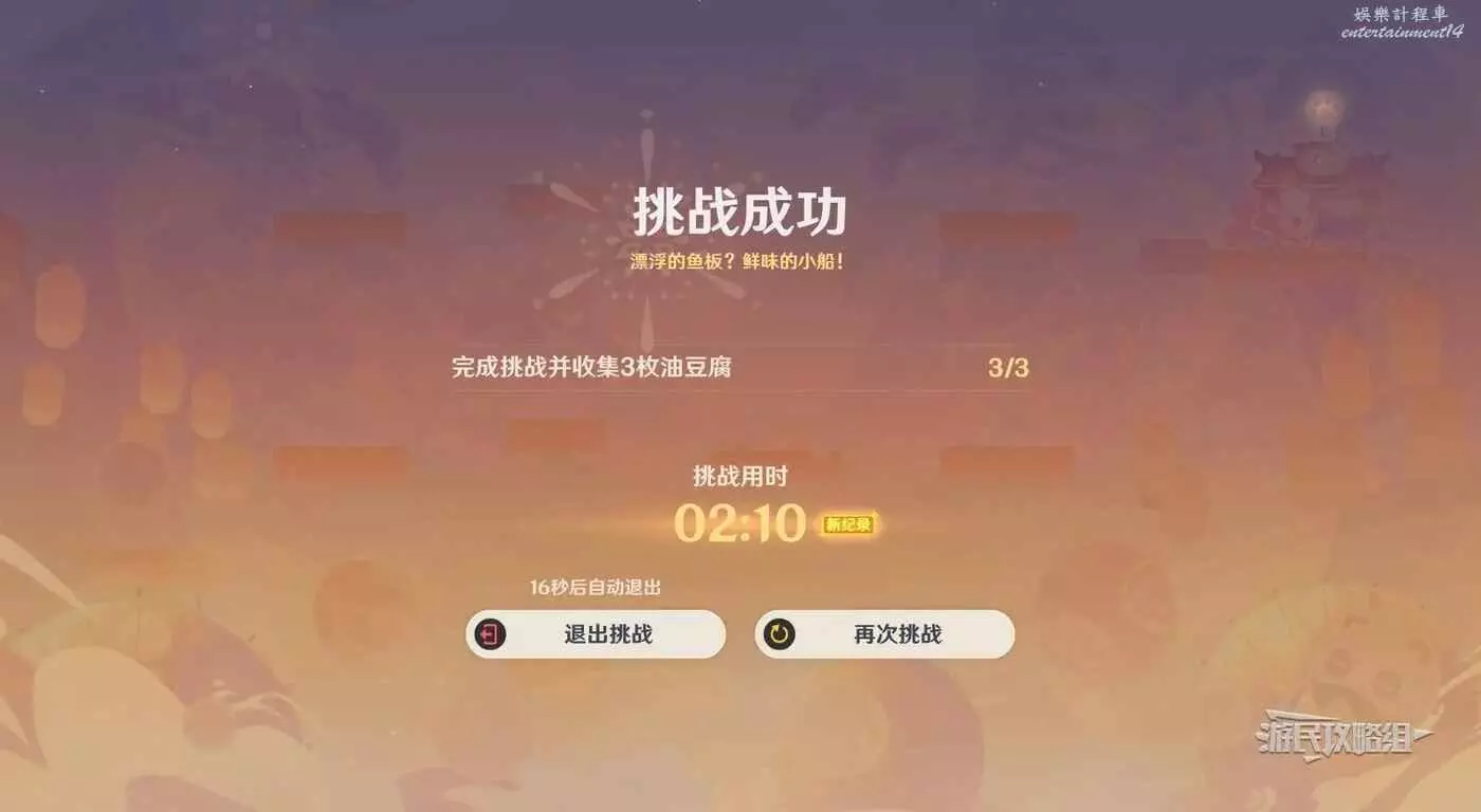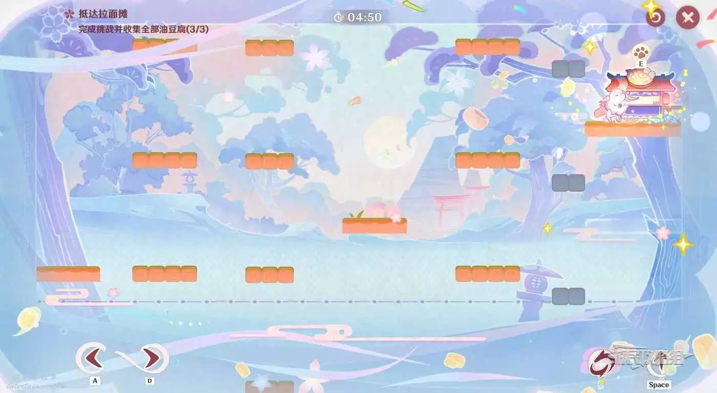 成功抵達拉麵攤;完成挑戰並收集3枚油豆腐