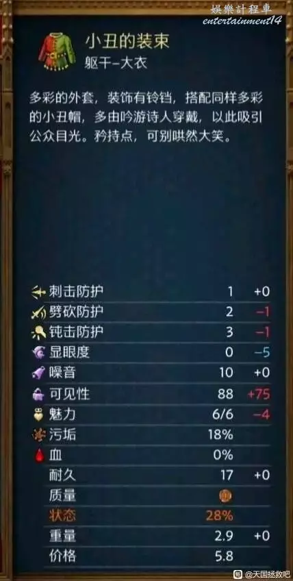 天國降臨 救贖 2 小丑服裝獲取方法 15 2 月 2025-02-15 廣告 作者:貼吧用戶_7Mt53JM 來源:天國拯救吧 在快速旅行的隨機事件中,你可能會遇見樂師營地,在那裡停下,你會發現一名樂師身著獨特的小丑服裝,把時間調到晚上,將他擊暈,就可以扒取他身上的小丑服裝了,屬性並不怎樣,但是比較獵奇。 順帶一提,最好挑選路旁有營地的快速旅行路線,這樣才能遇見營地事件。