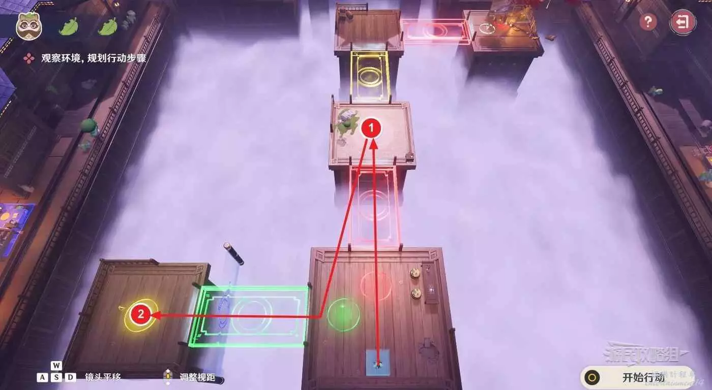 去紅色序號①是為了讓分身拾取鑰匙,紅色序號②提前結束回合。
