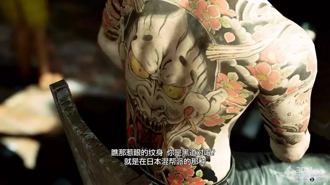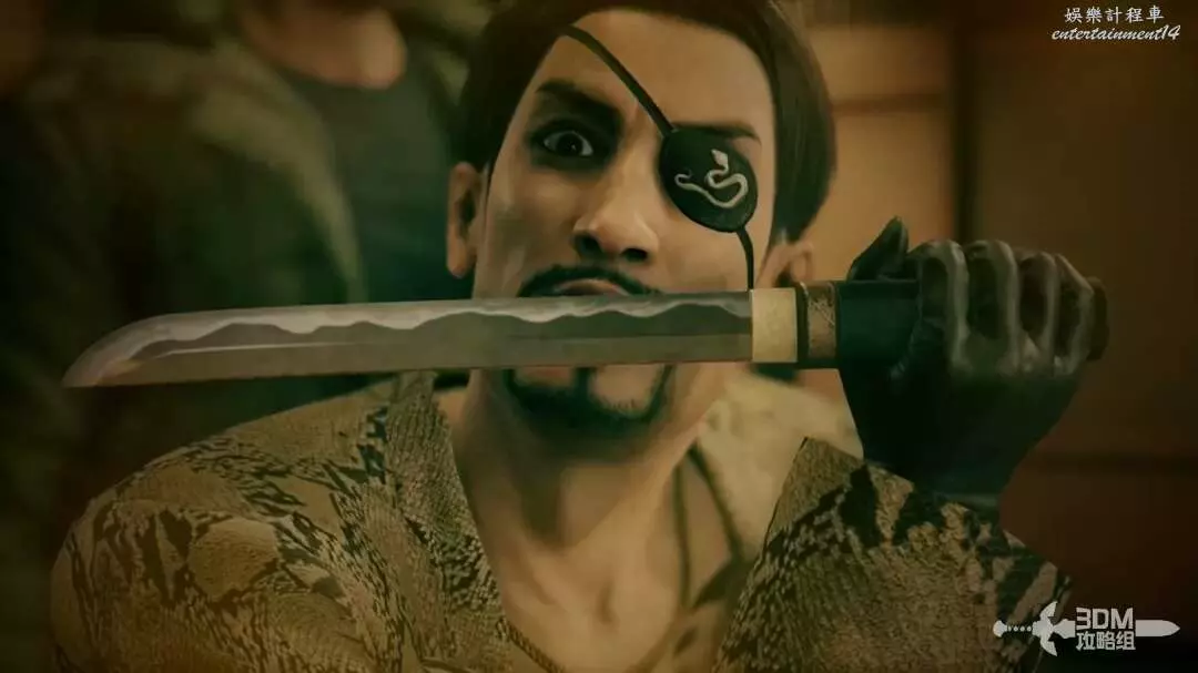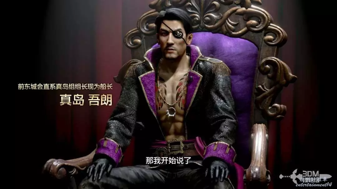 真島從鏡頭外緩緩走向畫面中,以打破第四面牆的方式,向螢幕前的玩家,講述自己的故事…