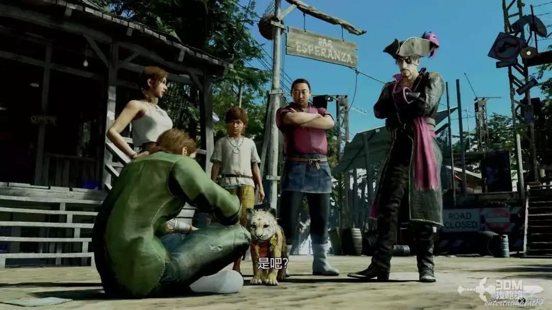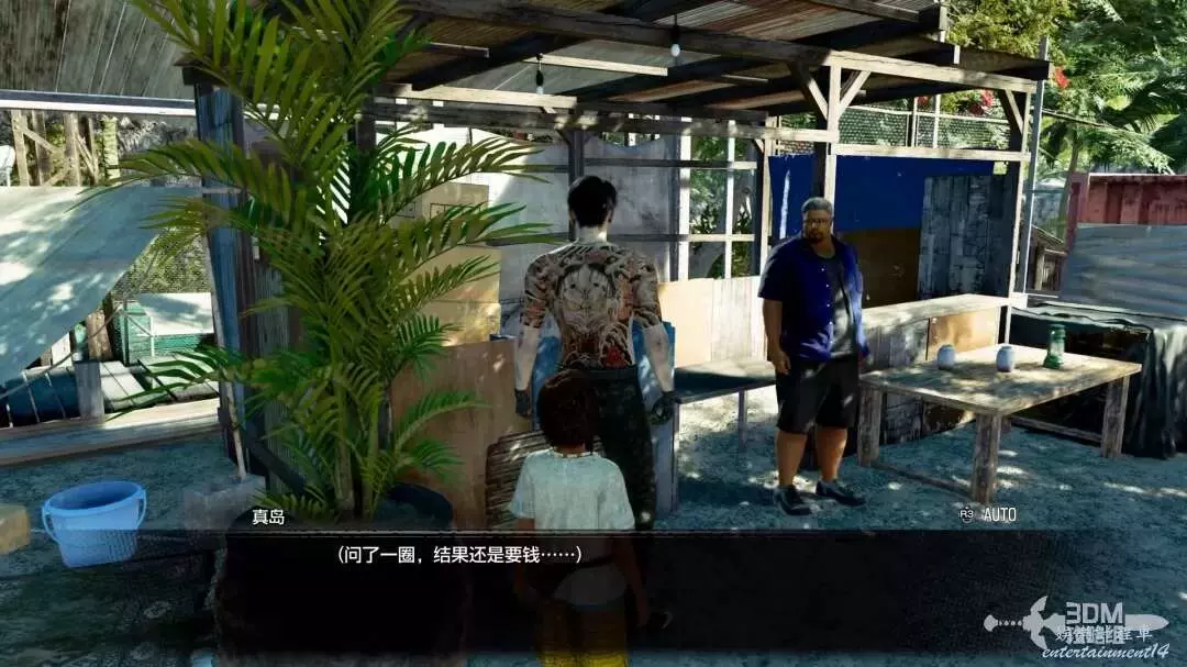 真島從酒館後門進來,一頓嘴炮基斯,然後有和莫阿娜道歉,表示自己帶來許多麻煩。