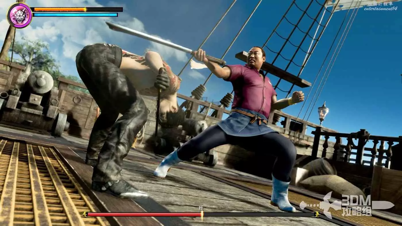 剛開始真島準備以理服人,想讓船長帶自己去聶勒島,可是沒有一個人能聽明白話,只能出手教訓了海盜們。