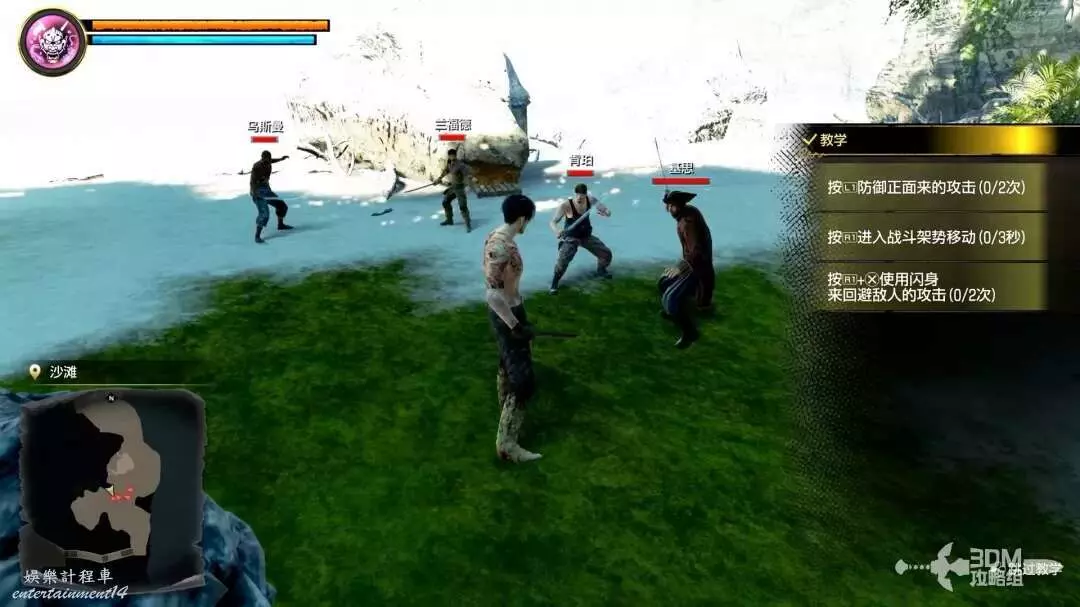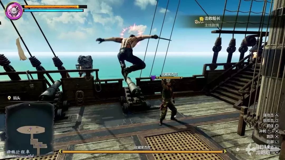 接下來就是與海盜們的戰鬥,同時也是一些攻擊連招以及防禦教學,