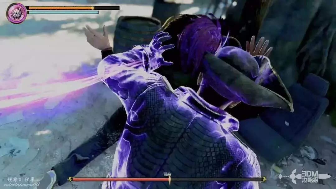 在戰鬥的時候如果體力條是滿的情況下,可以和周圍的環境互動,有的時候可以撿起旁邊的木桶造成可觀的傷害,也可以將對手撞牆或者別的特殊動畫。