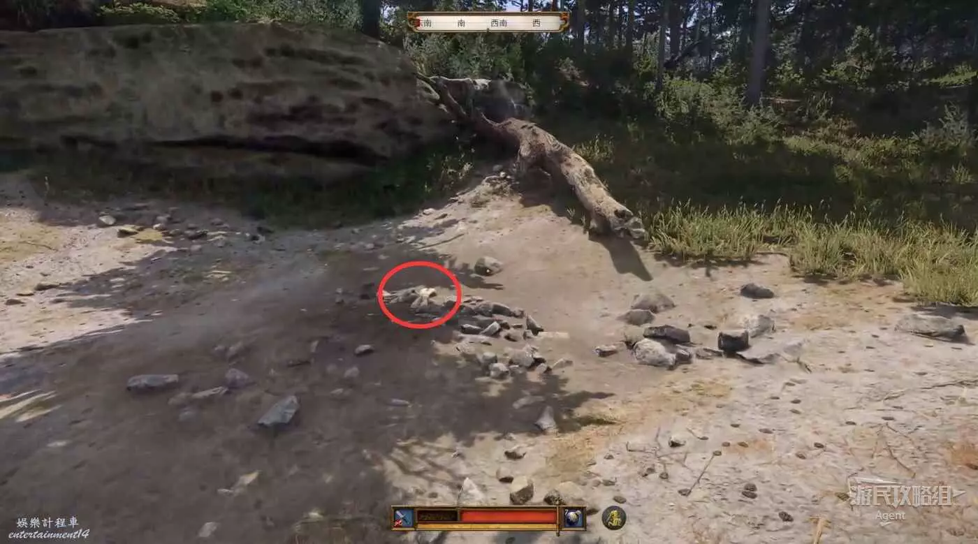 經過樵夫營地,沿路走來到小溪的分岔口,然後沿著北面的小溪走到頭,發現龍骨。