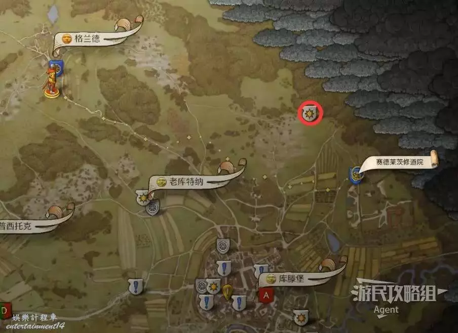 到格蘭德東面的下圖位置,遇到個謙卑騎士,他要你去修道院拿瓦倫丁爵士的劍。