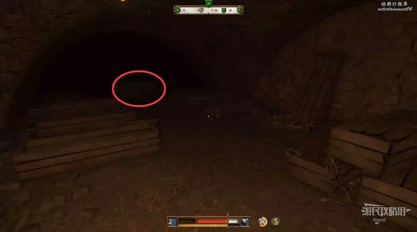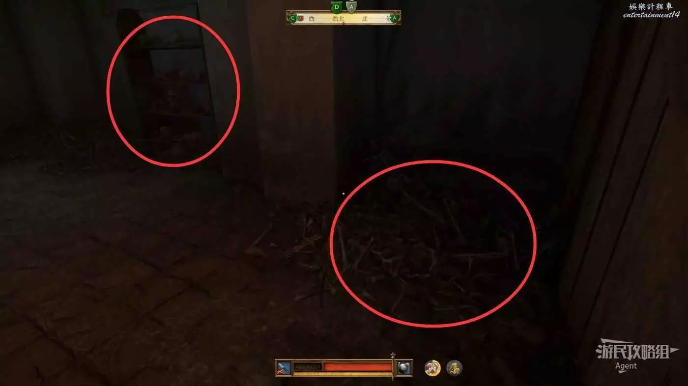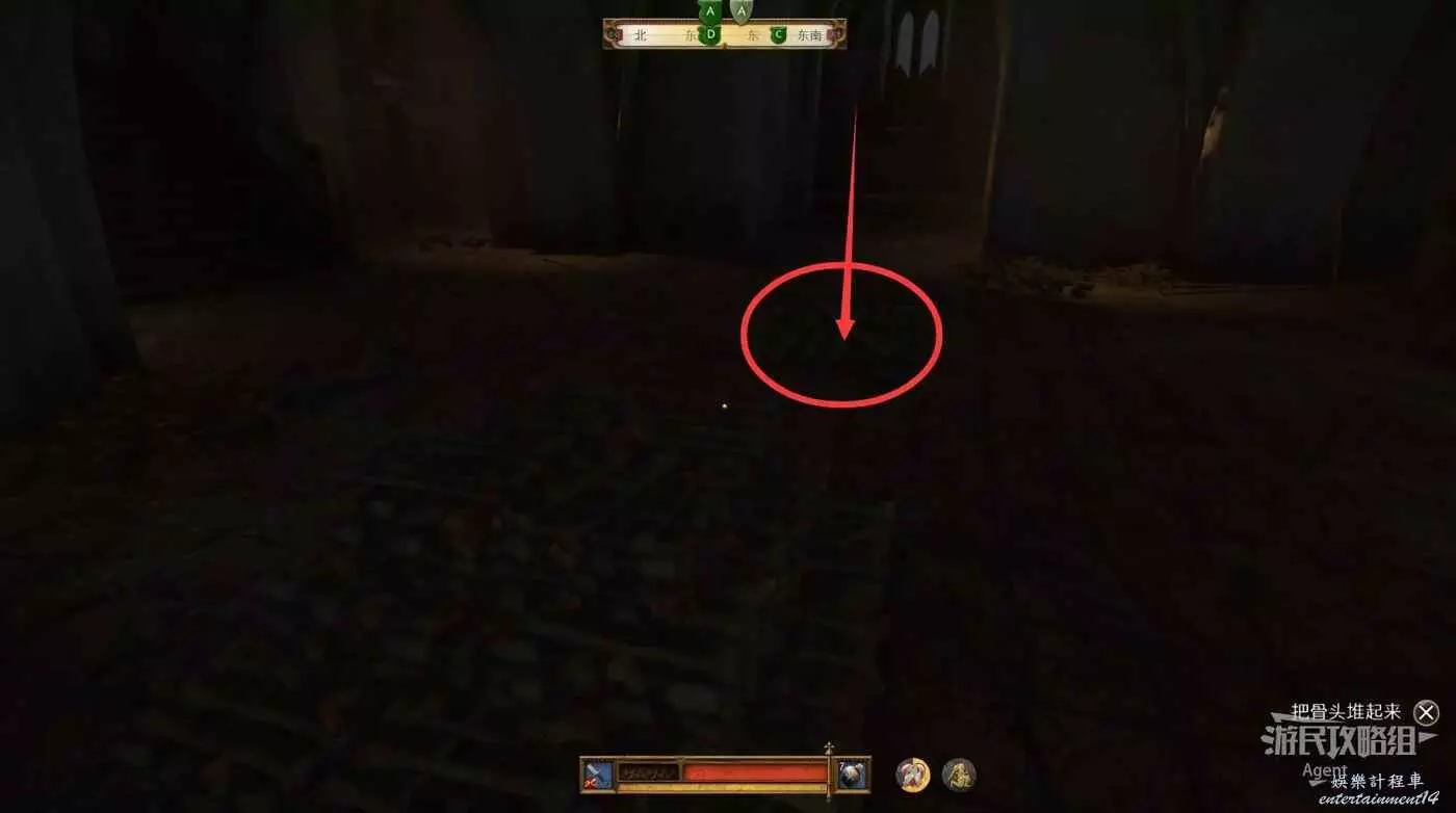 把骸骨堆到三個骨堆上發現數量不夠,地板中間有個通往地窖的暗門,下去收集更多骸骨。