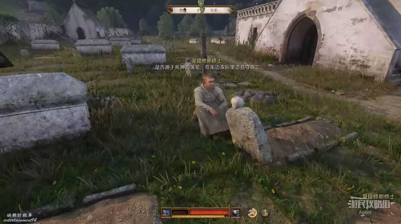 來到修道院,和莫提修斯修士對話,他要你收集教堂裡的骸骨搭建三座骨堆。