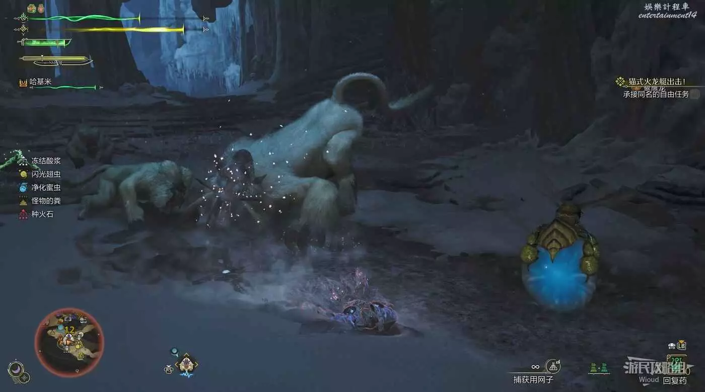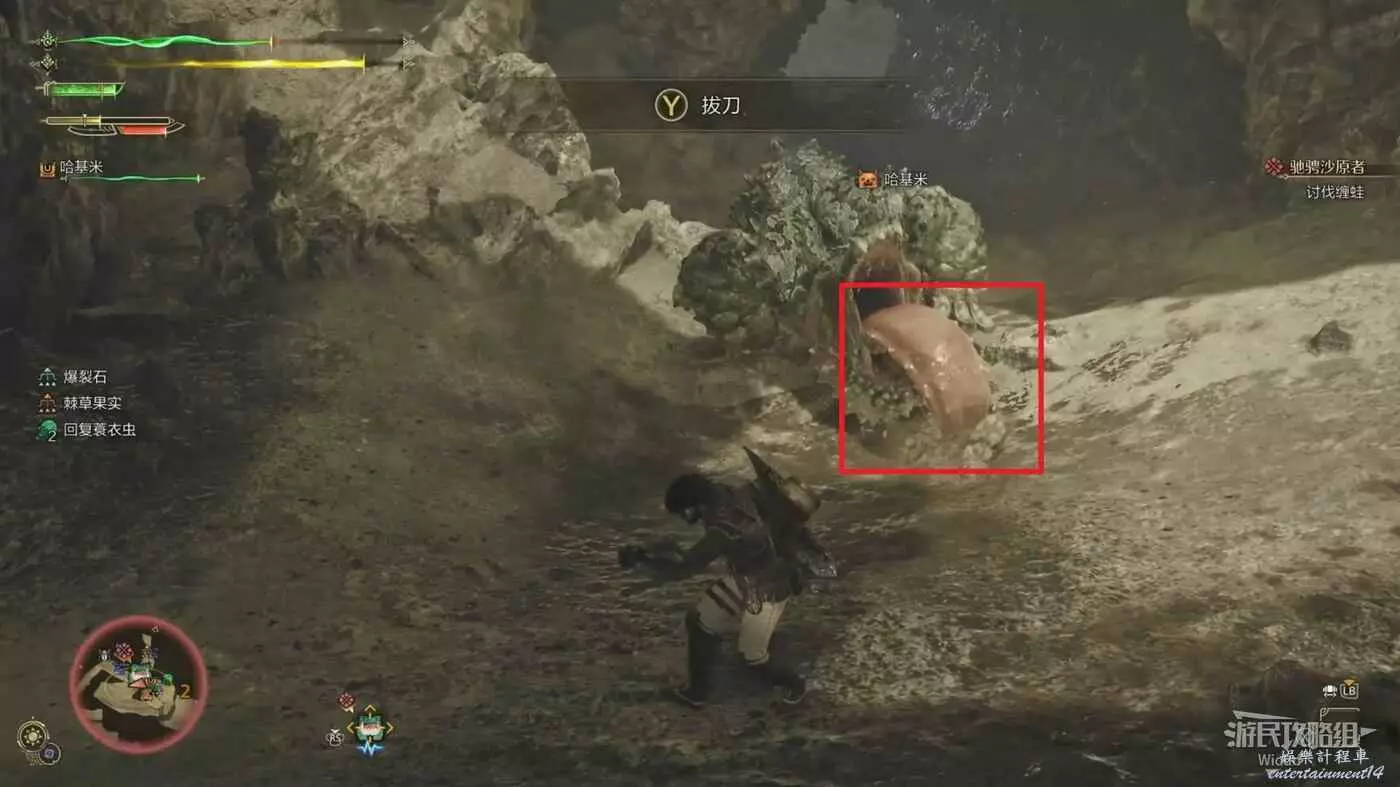 而纏蛙的兩個前肢是可被破壞的部位,破壞部位後可以獲得最稀有的素材【纏蛙的纏甲】,正常擊敗只有15%的幾率可以獲得。