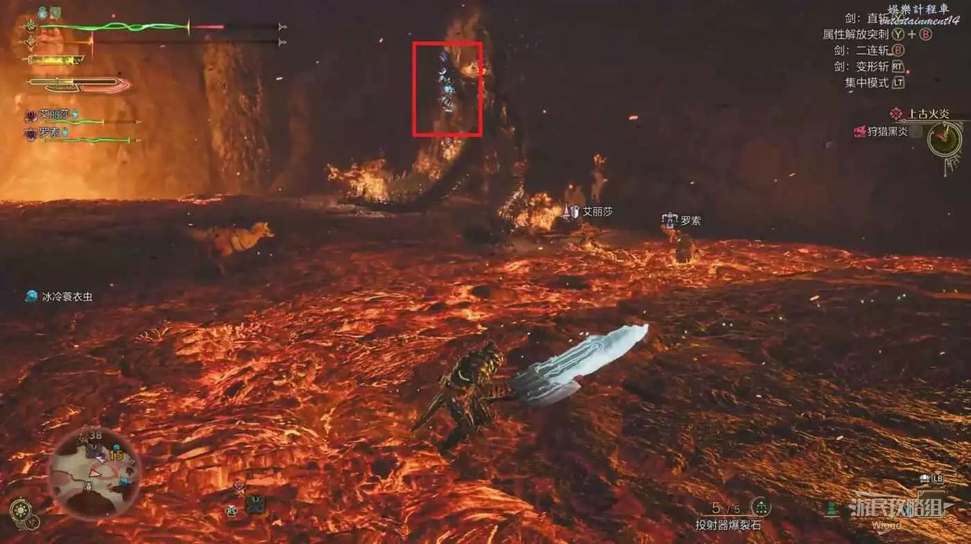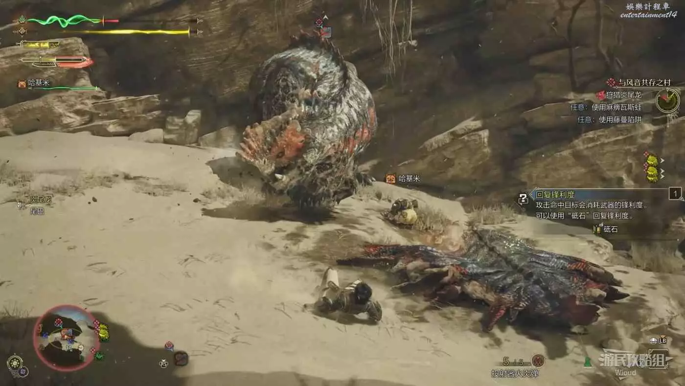 炎尾龍的弱點是其頸部,也就是脖子這一塊,正常攻擊難度稍大,建議優先攻擊可破壞的部位製造傷口,等待倒地時全力攻擊弱點。
