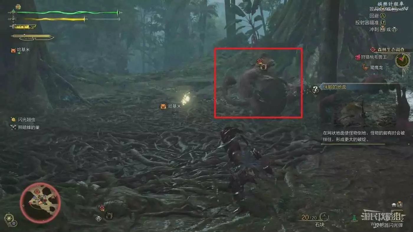 此招式有一個明顯的抬手蓄力的動作,隨後纏蛙用右爪砸向地面對被擊中的玩家造成擊飛效果,因前搖明顯有充足的躲避時間。