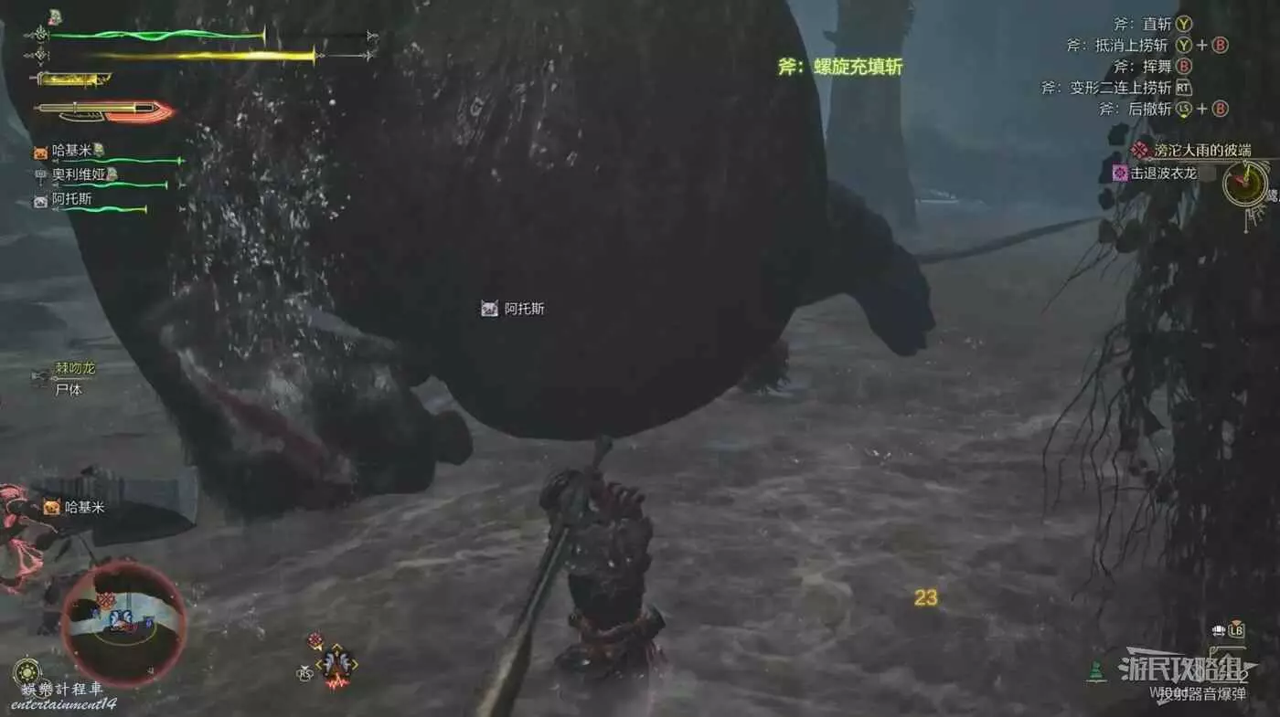 經典尾擊動作,怪物站立不動,屁股尾巴抬高配合低頭+回看,一定要養成對這個動作有肌肉反應的意識。