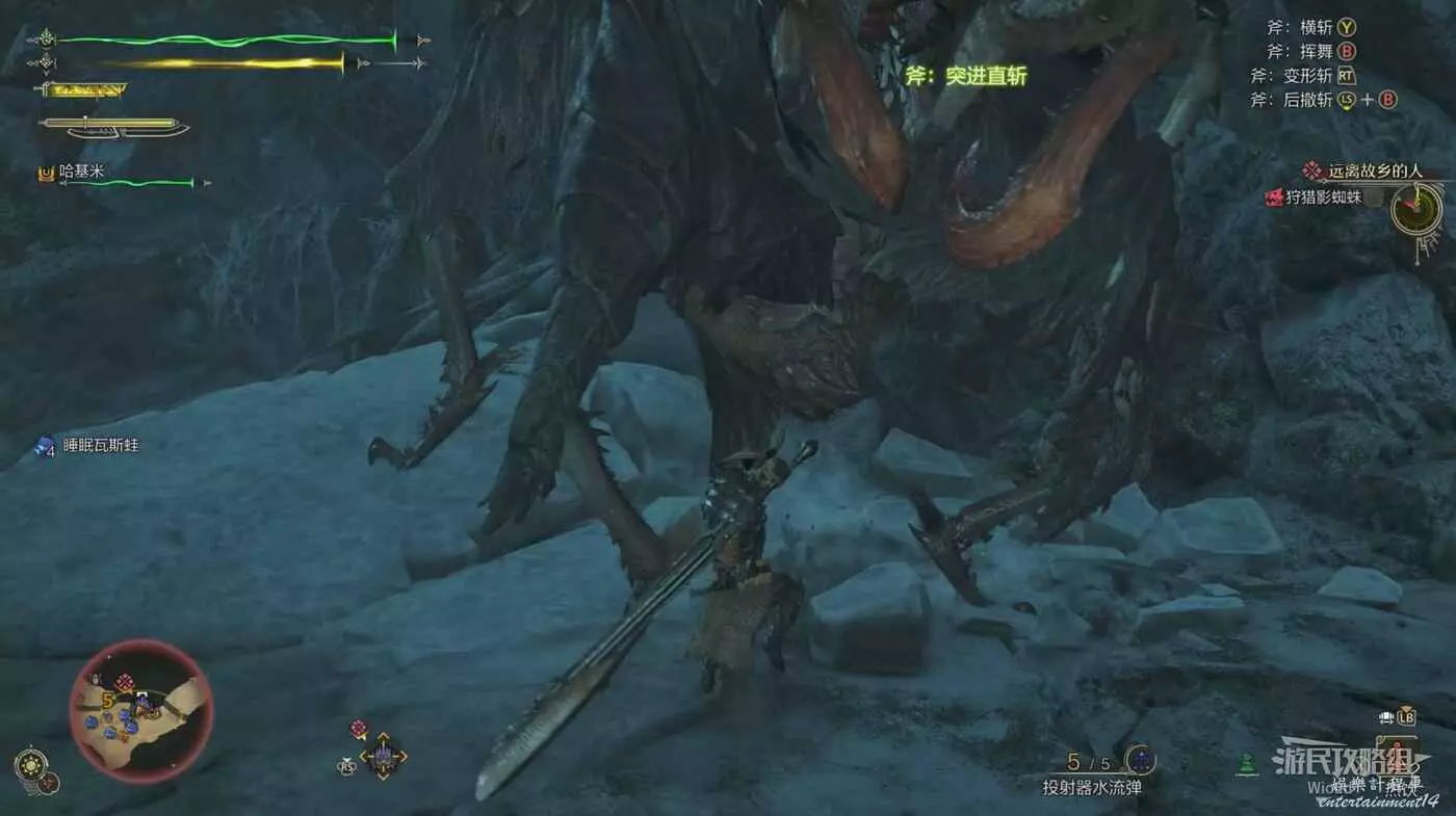 使用此招前,蜘蛛會抬起一根腿並暫時不動,蓄力狀態結束後使用抬起的腿砸向地面,看到前搖直接往另一側移動躲避。