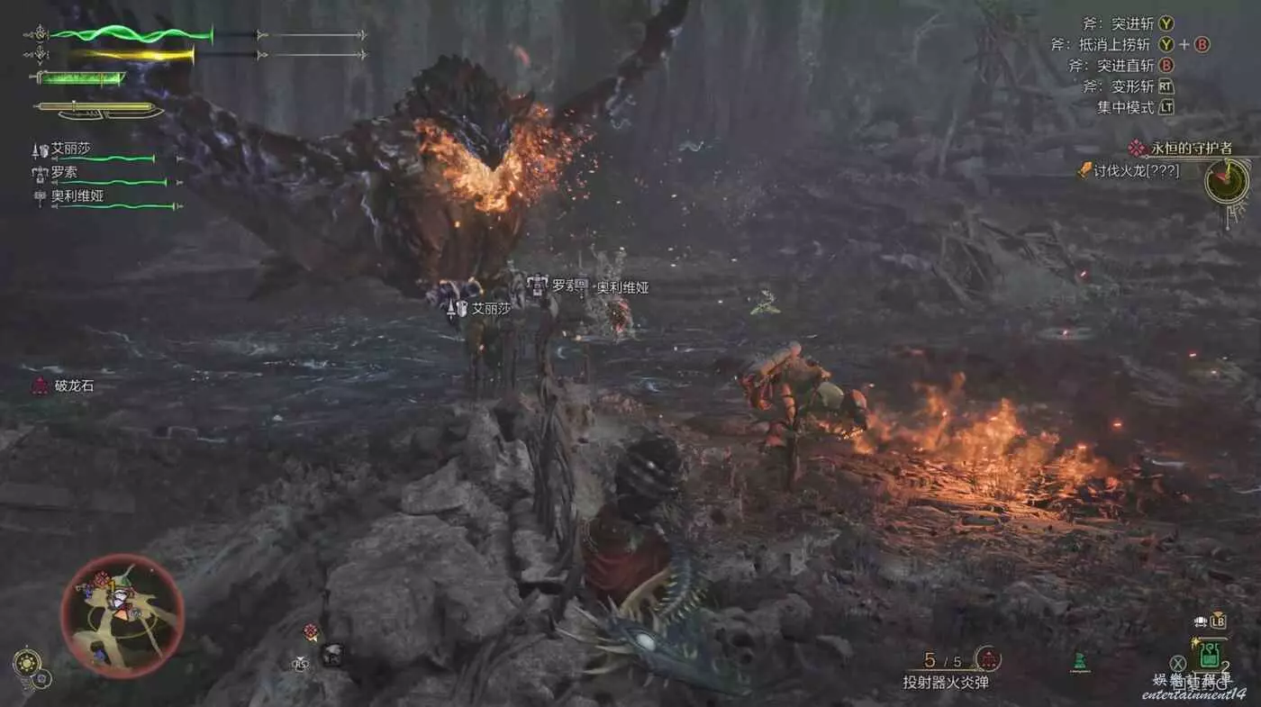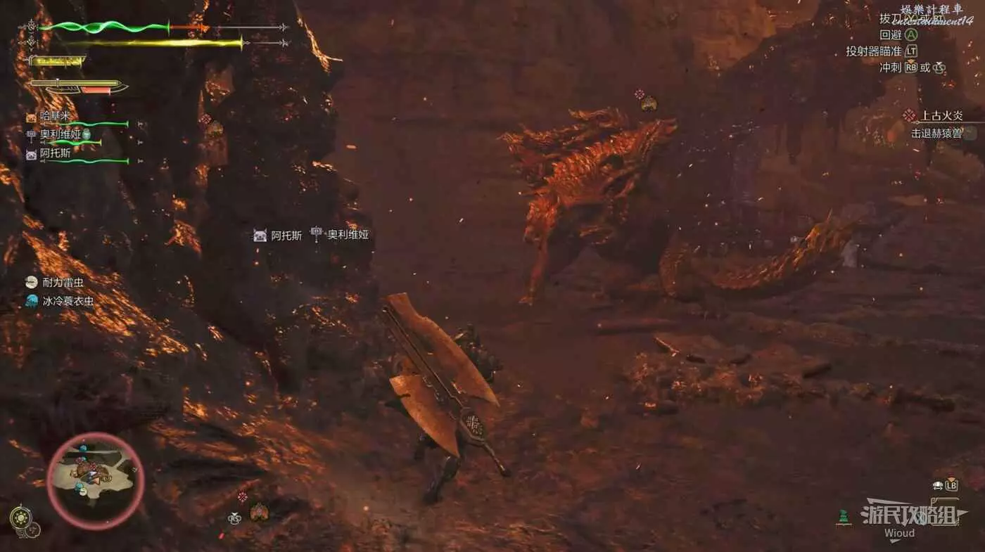 這招直接看火龍的嘴,當火龍使用此招前嘴裡會出現極其明顯的火星子,因火龍的吐息範圍很大,需要立刻召喚坐騎開始快速移動。