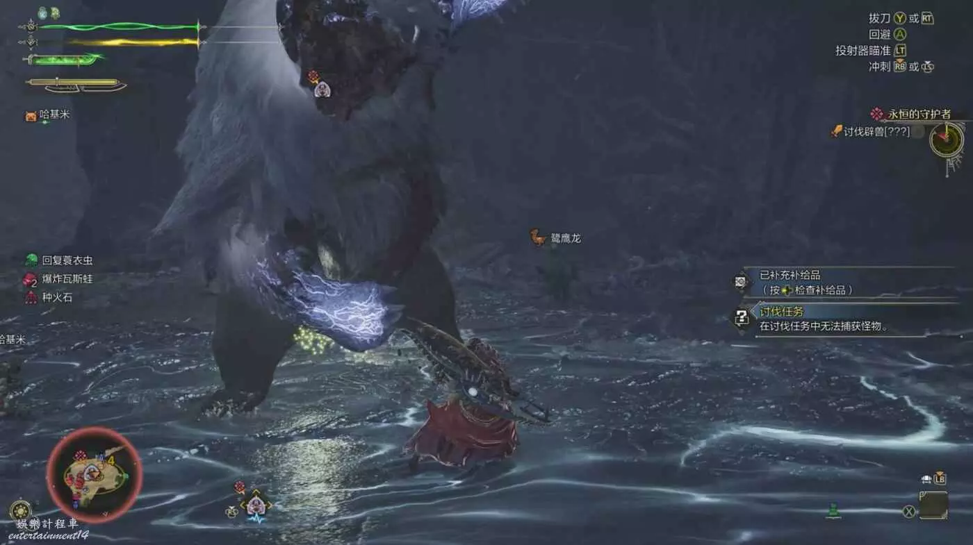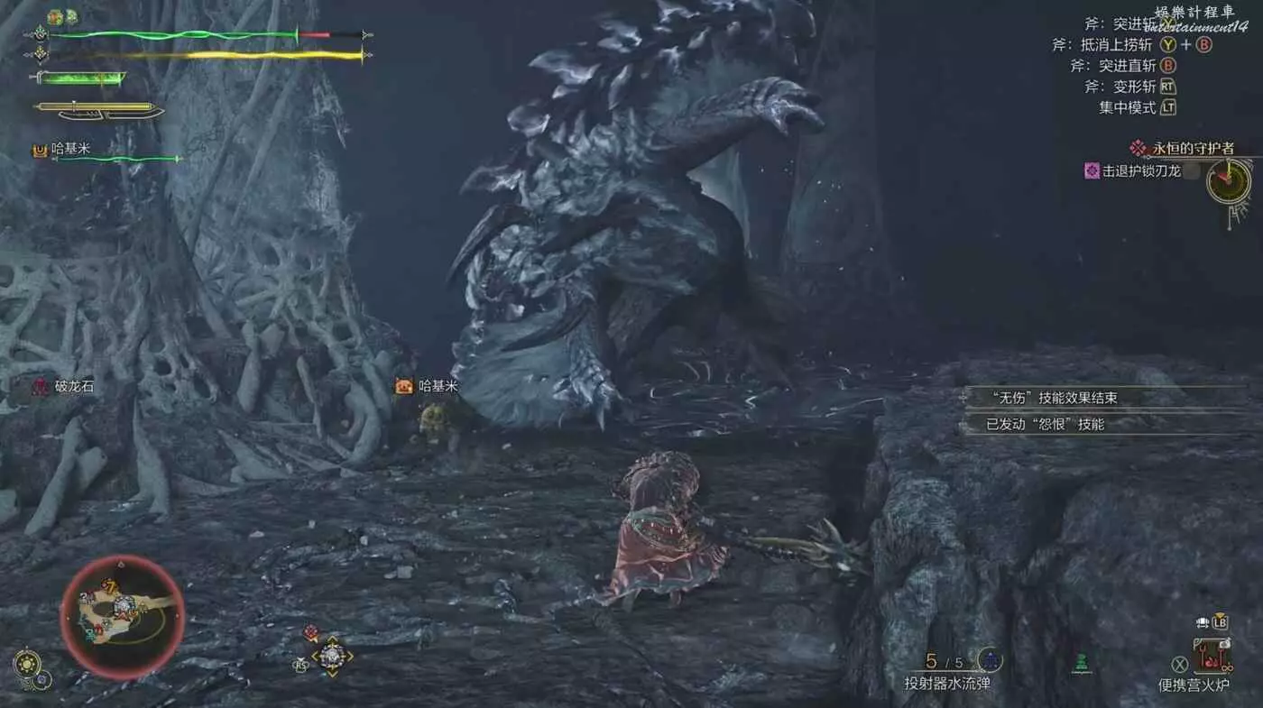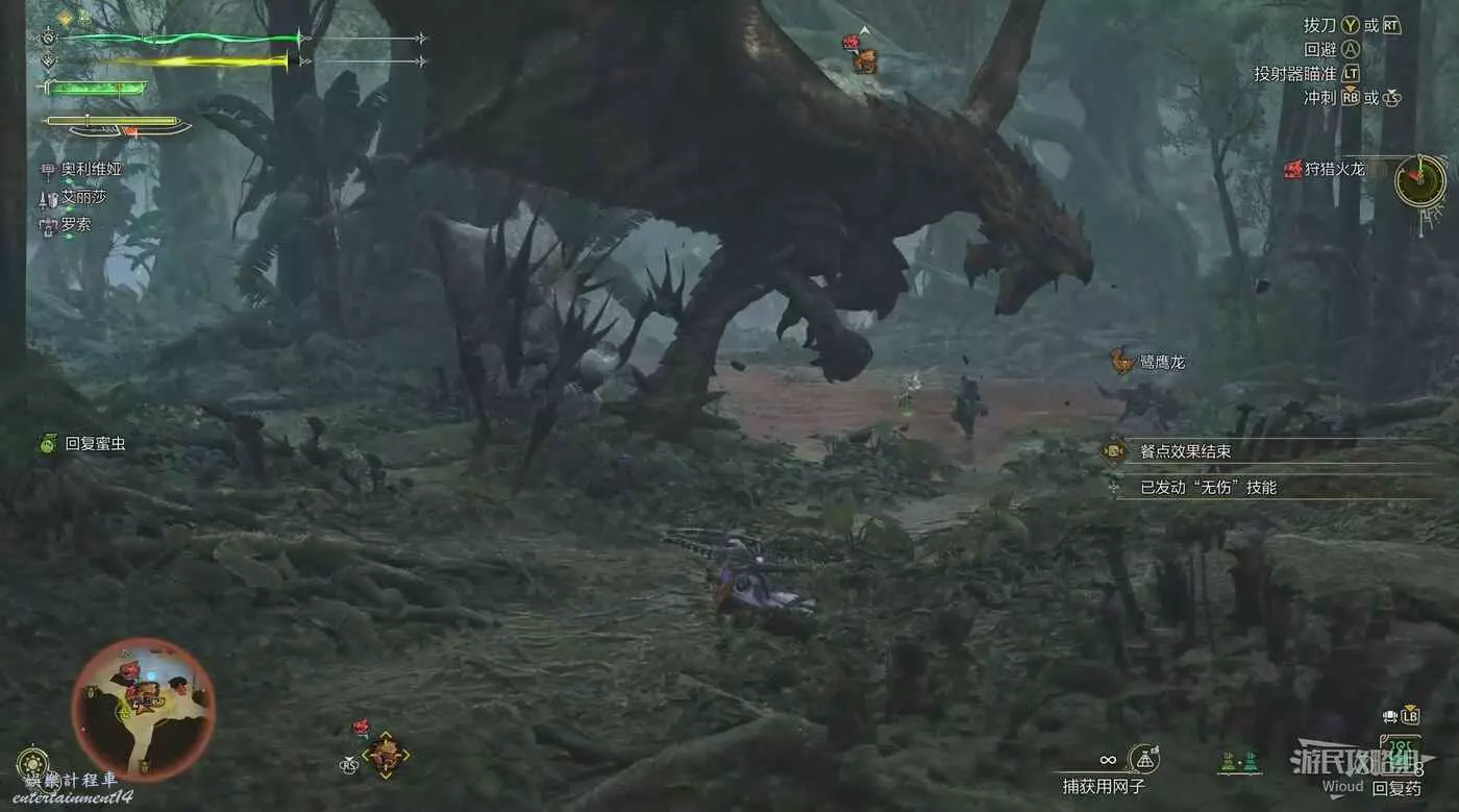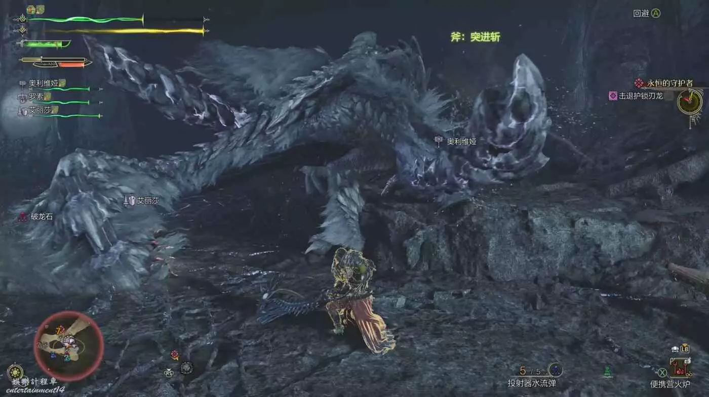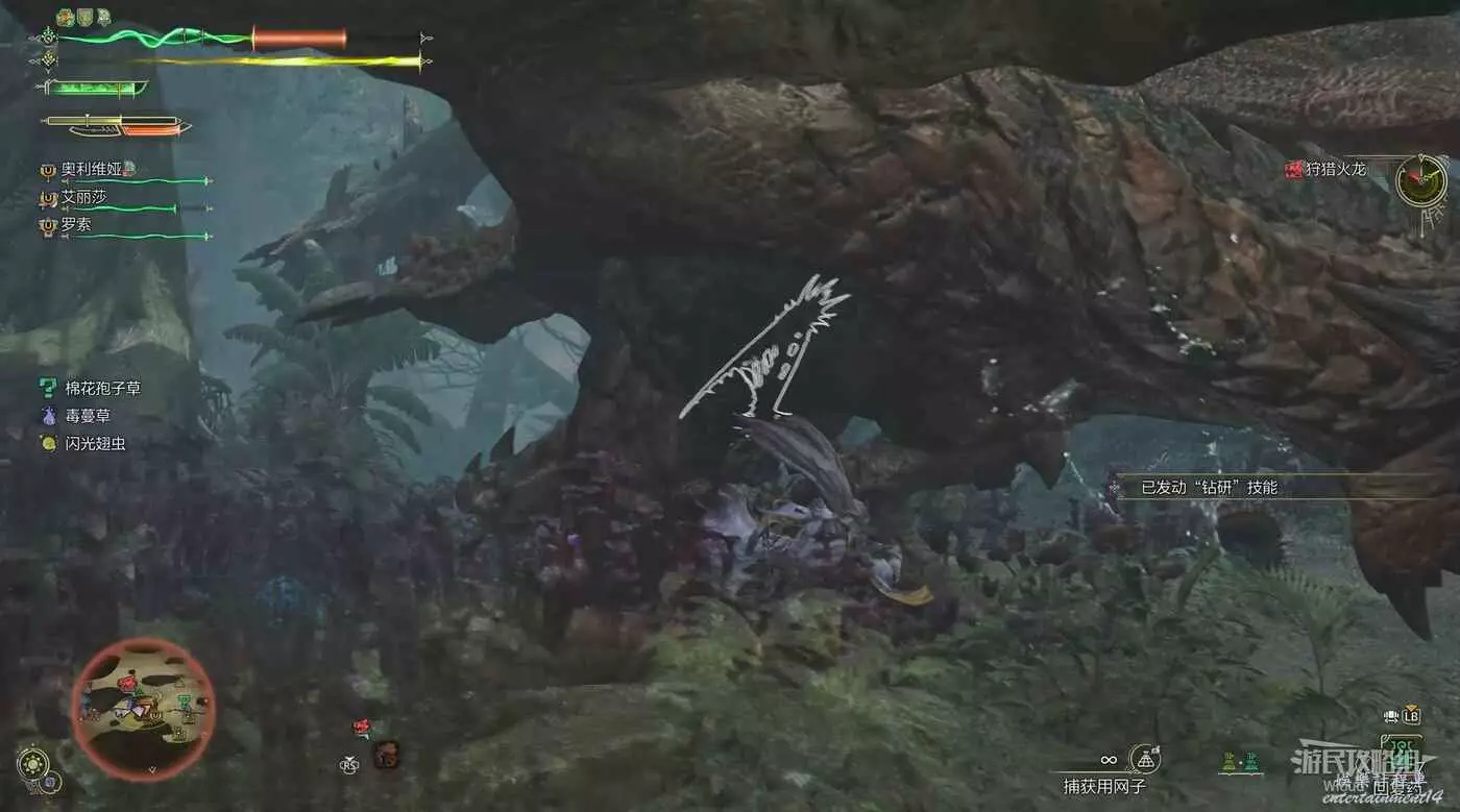 護雷顎龍突然起身朝天怒吼,短暫蓄力後朝著玩家直接衝刺而來,在終點處還能造成一個範圍傷害判定。