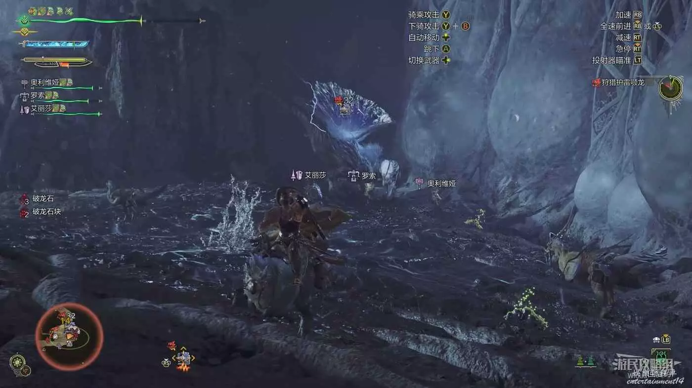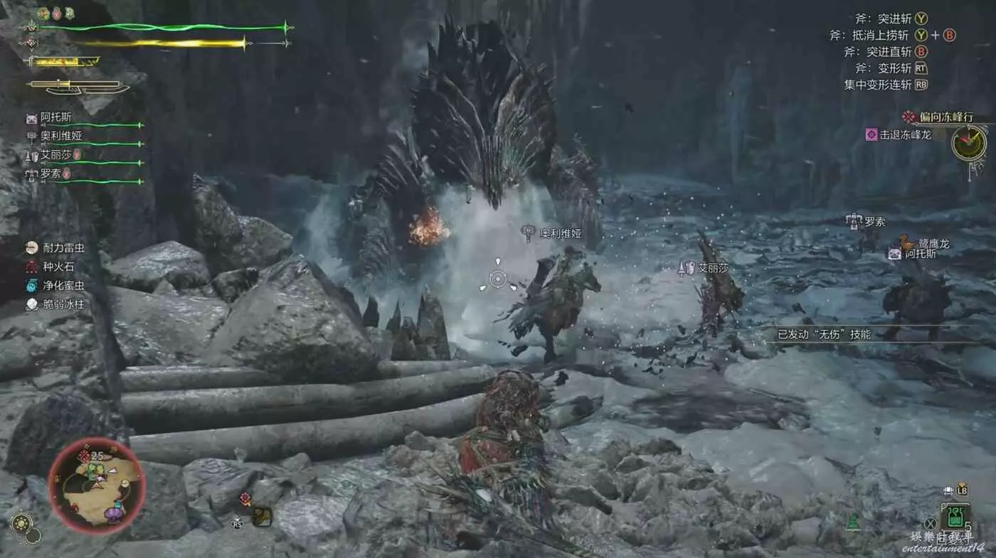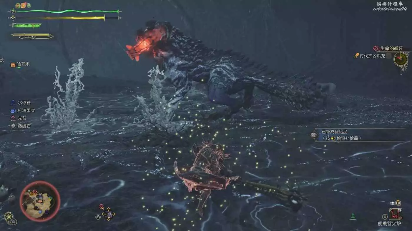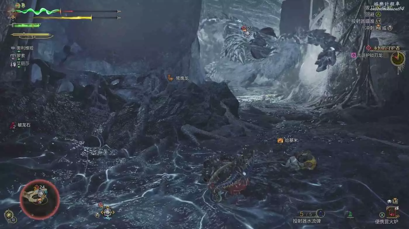 護雷顎龍突然起身朝天怒吼,短暫蓄力後朝著玩家直接衝刺而來,在終點處還能造成一個範圍傷害判定。