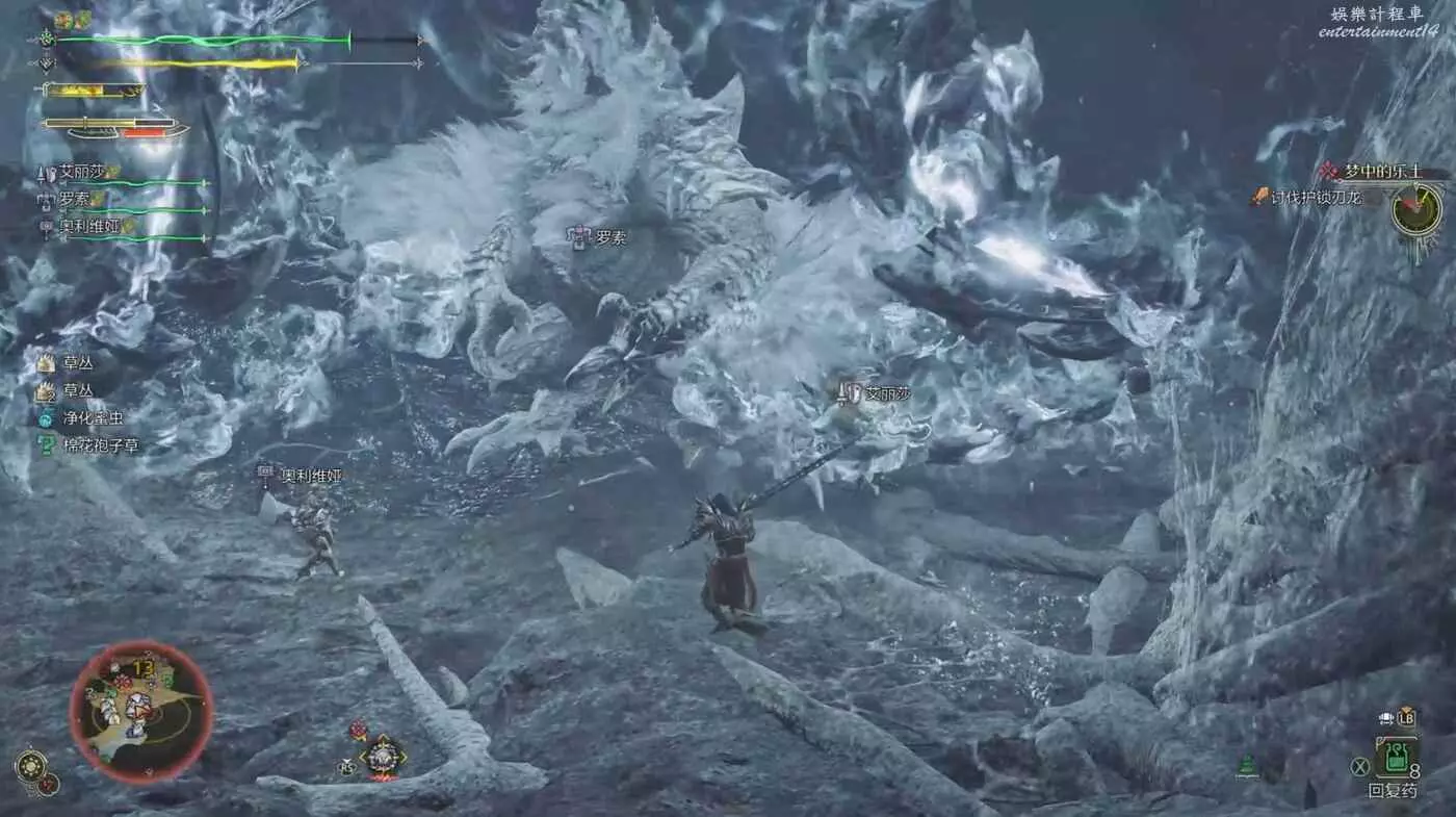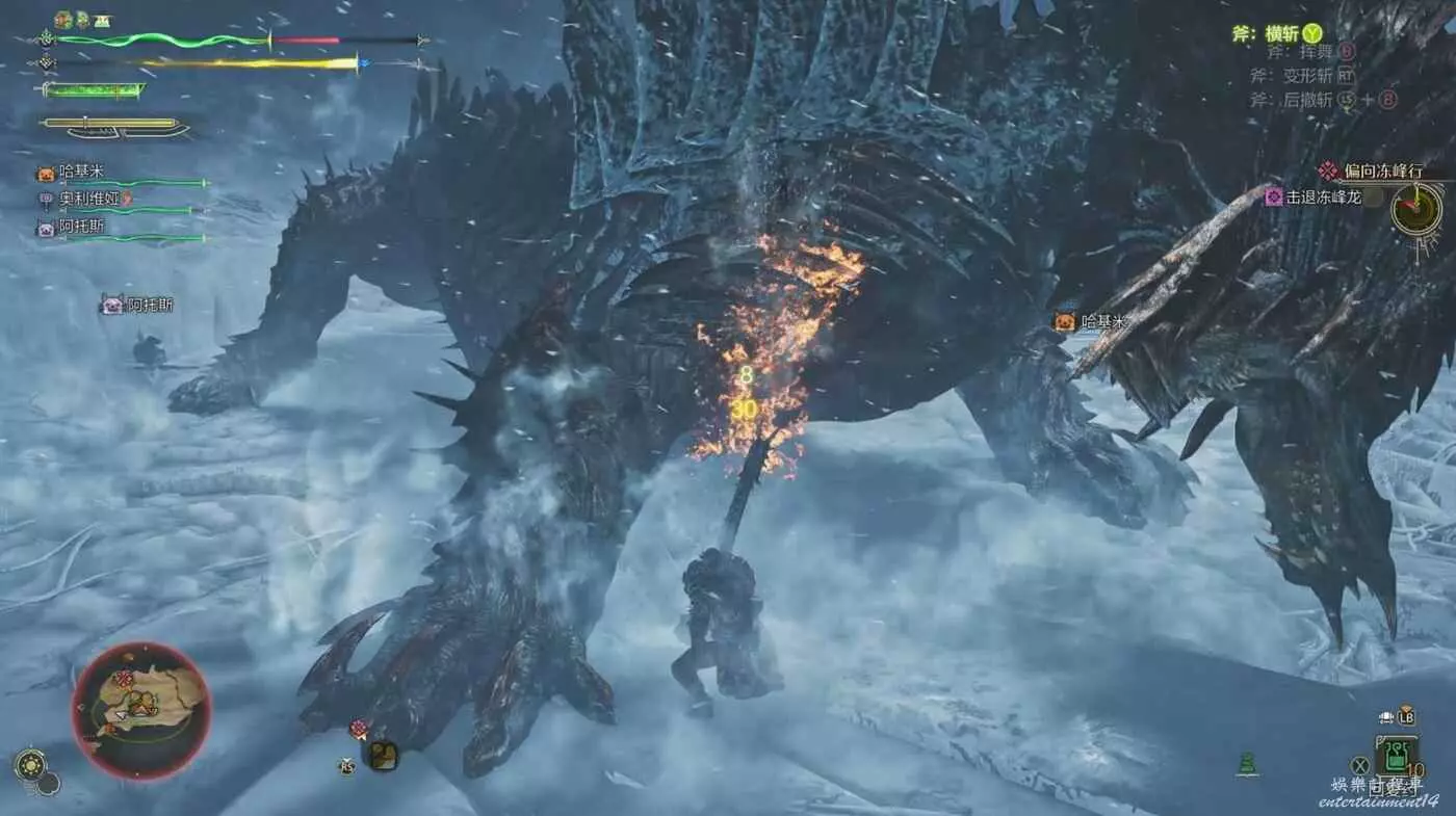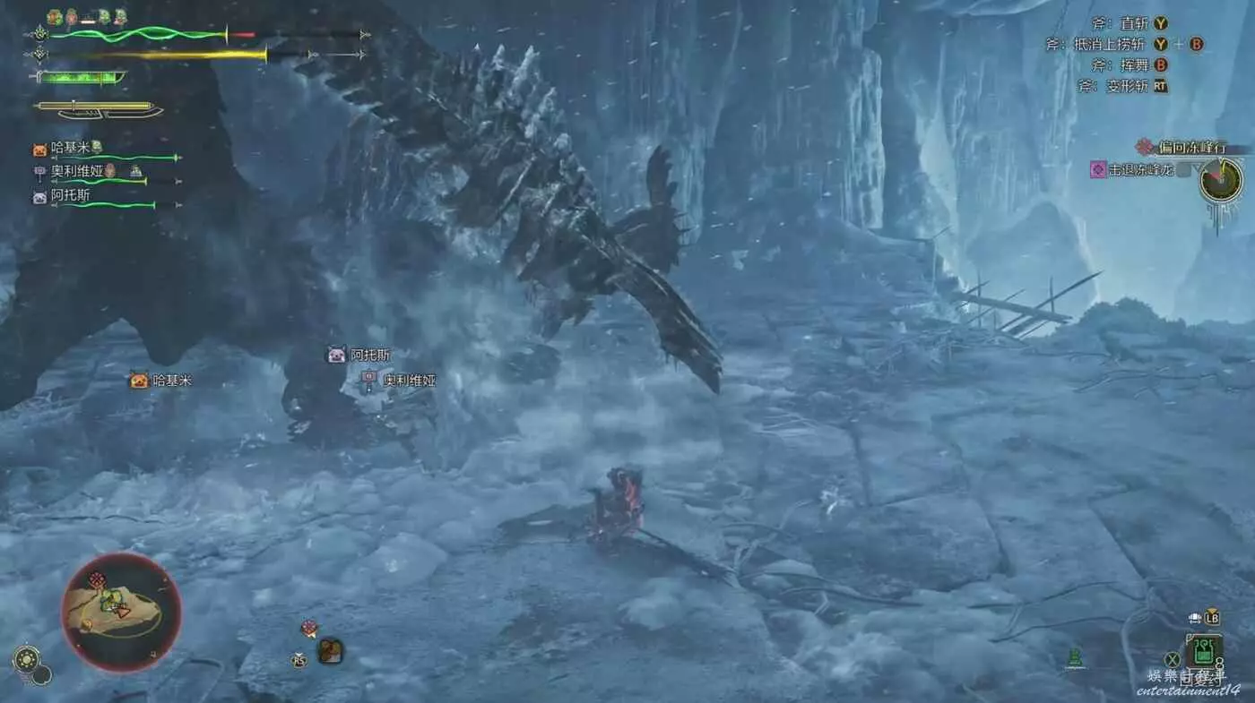 注意雪獅子王的嘴,當它即將用這一招時,嘴邊會出現白色的冷氣並且低頭蓄力,當看到這個動作就面對雪獅子王往右邊移動,雪獅子王只會從左邊開始吐,可以為我們帶來不少輸出機會。