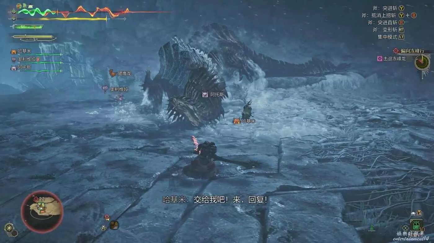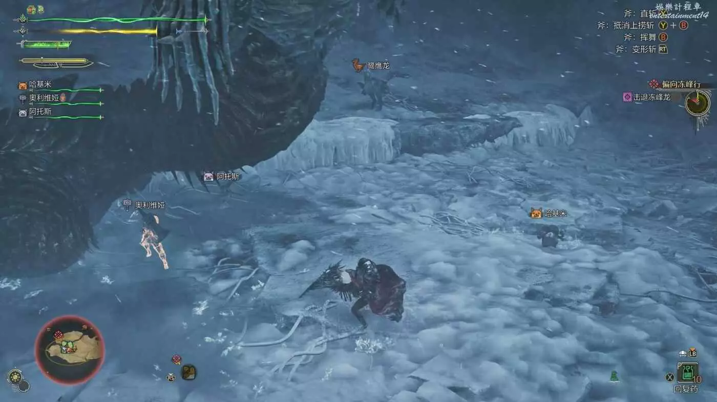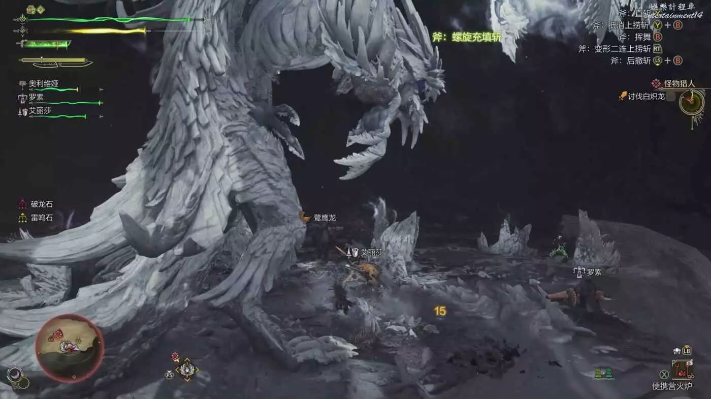 注意雪獅子王的嘴,當它即將用這一招時,嘴邊會出現白色的冷氣並且低頭蓄力,當看到這個動作就面對雪獅子王往右邊移動,雪獅子王只會從左邊開始吐,可以為我們帶來不少輸出機會。