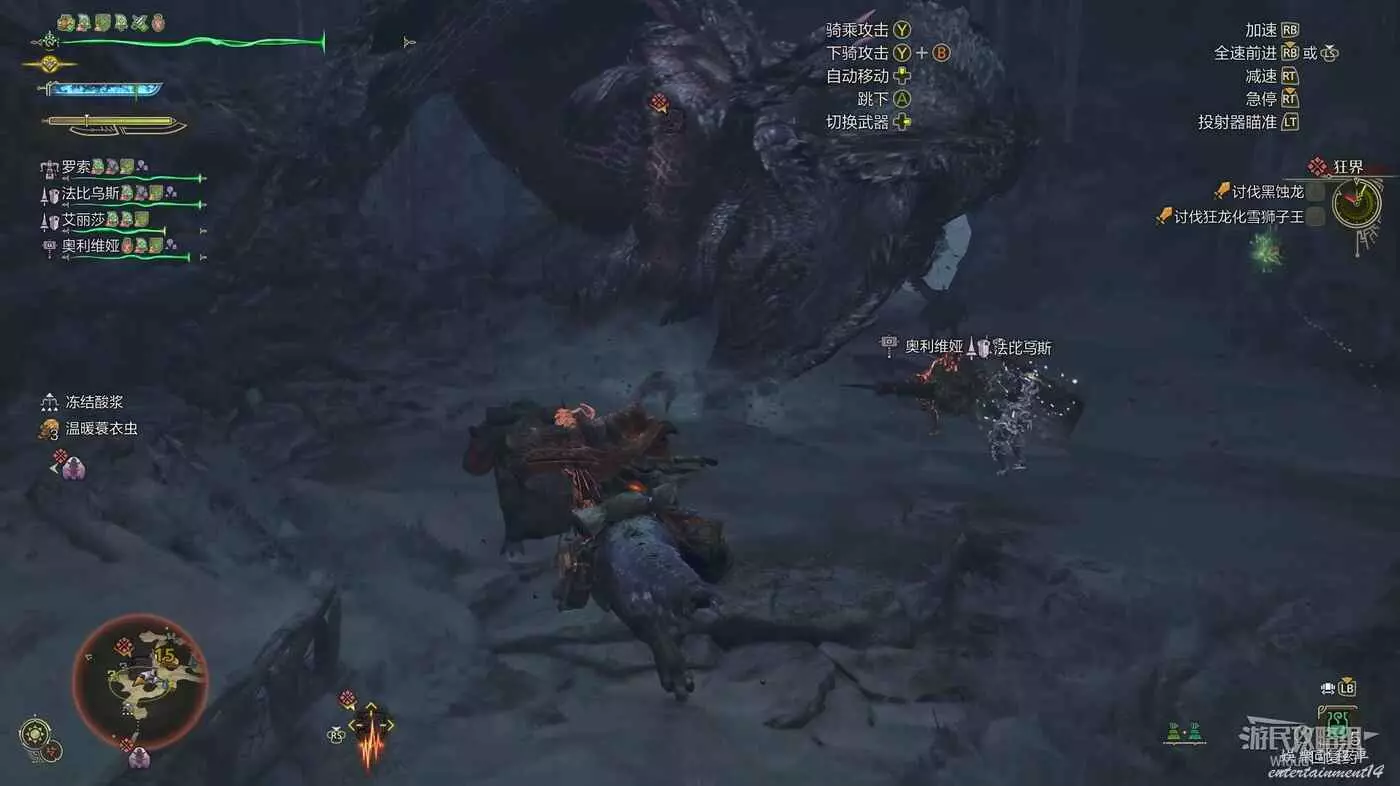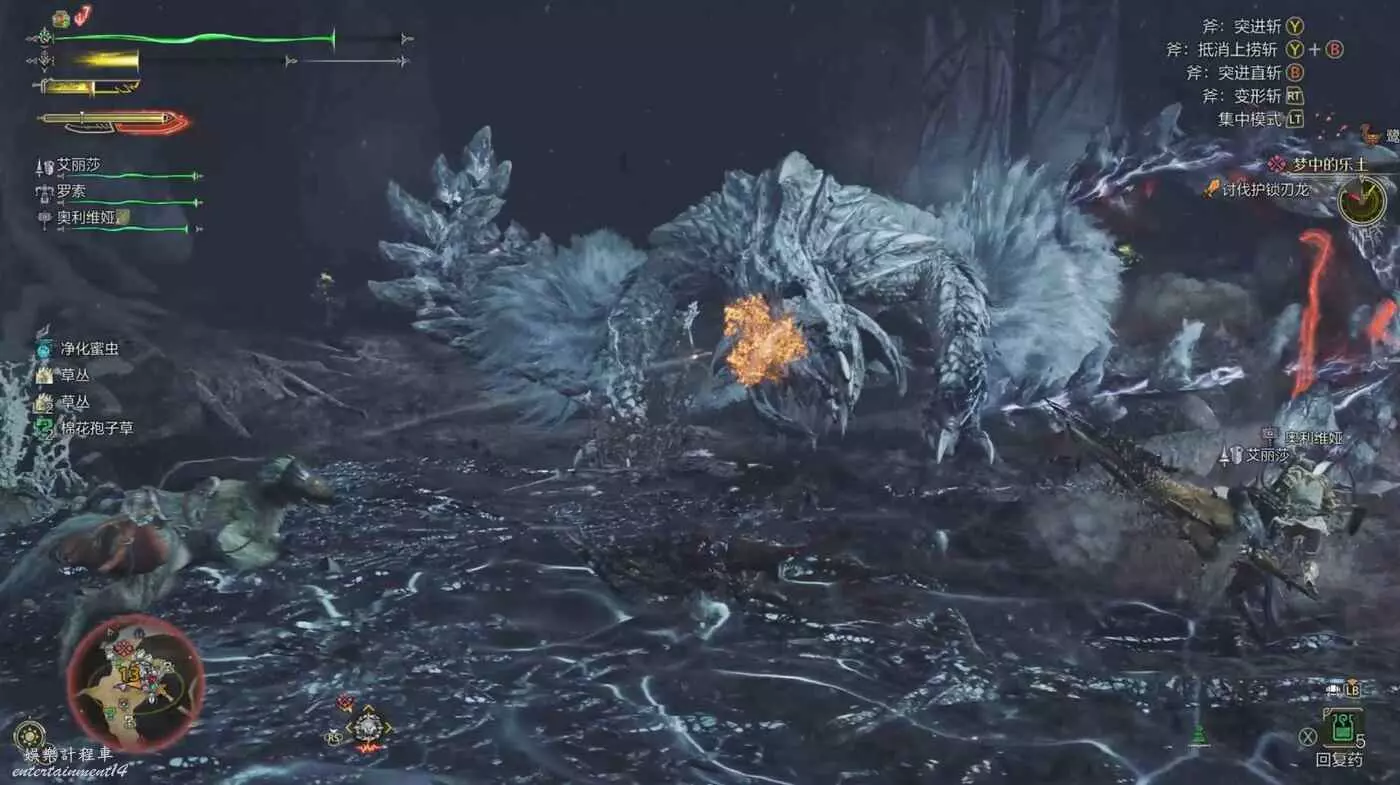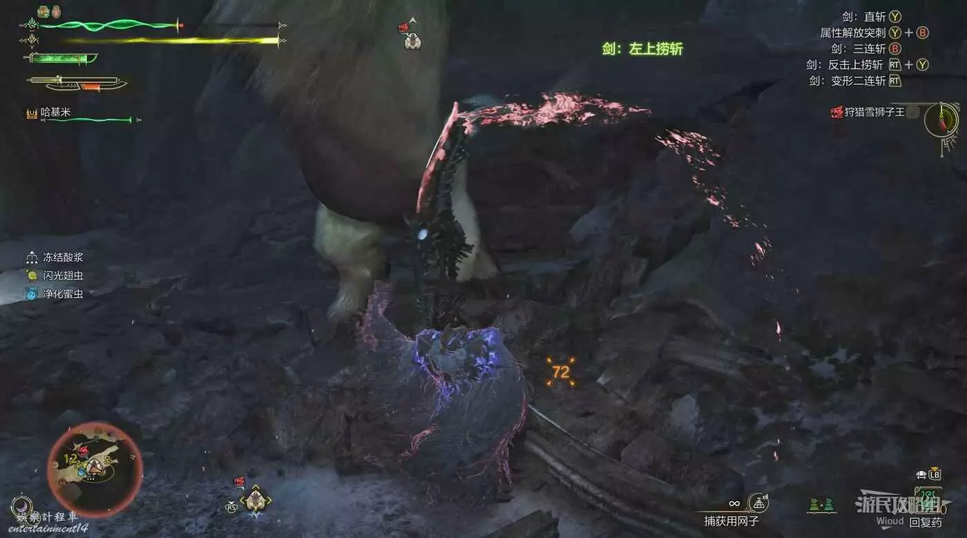 雪獅子王的臀部是弱點,其頭部和尾巴都可以被破壞,以上所有部位都有較高素材掉落率。