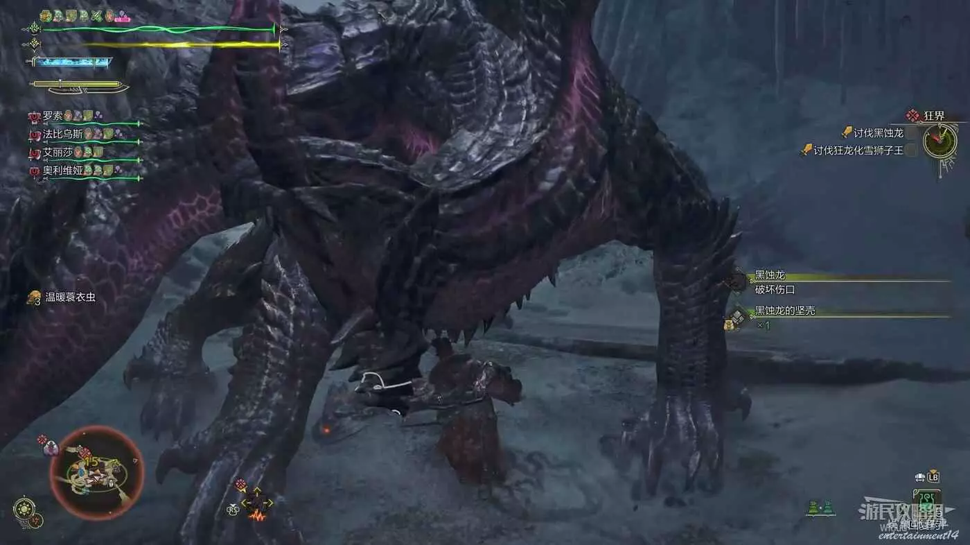 火龍的堅殼:目標報酬【20%】、破壞傷口掉落【50%】、剝取屍體【23%】。