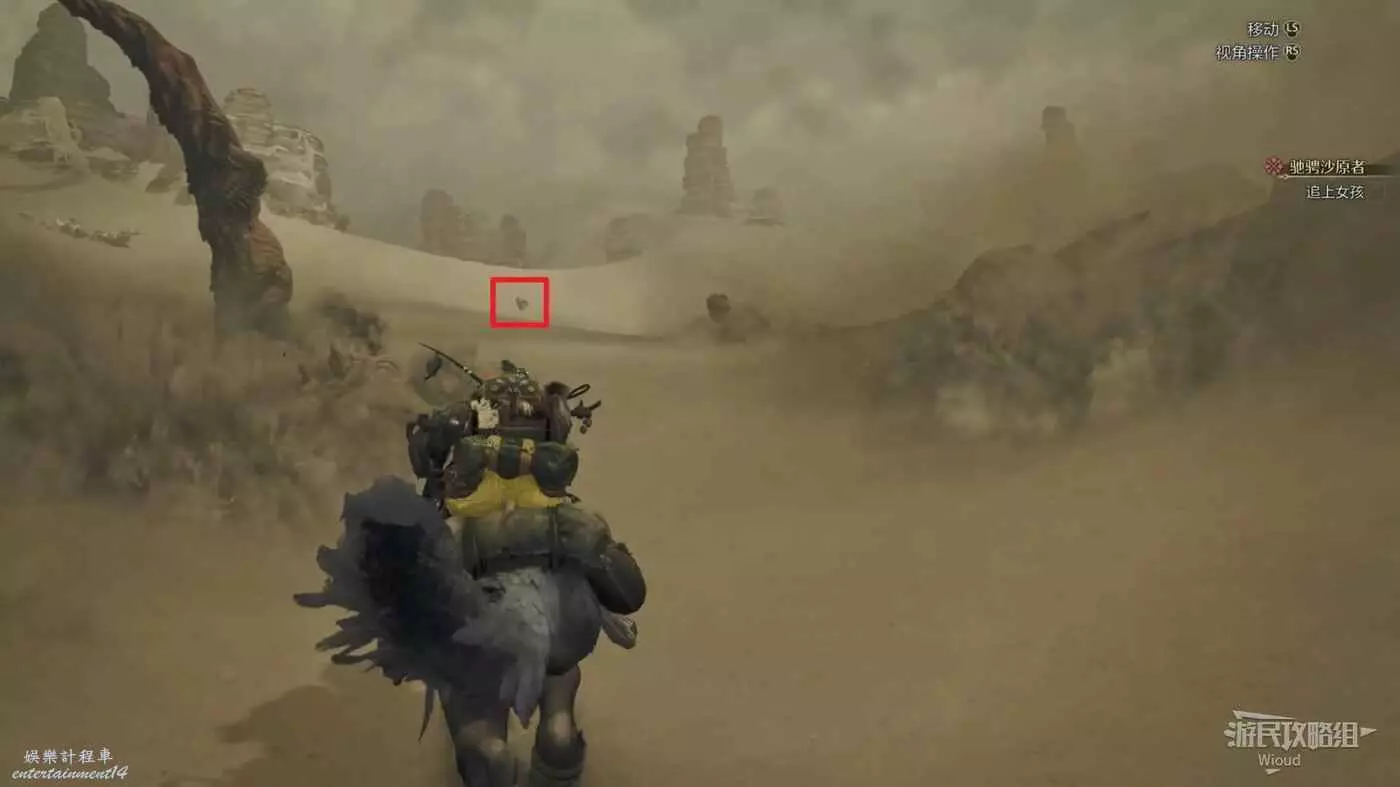 這裡不需要我們控制坐騎,環顧視角跟住前方的小女濱,來到劇情節點後小女孩會被困住。