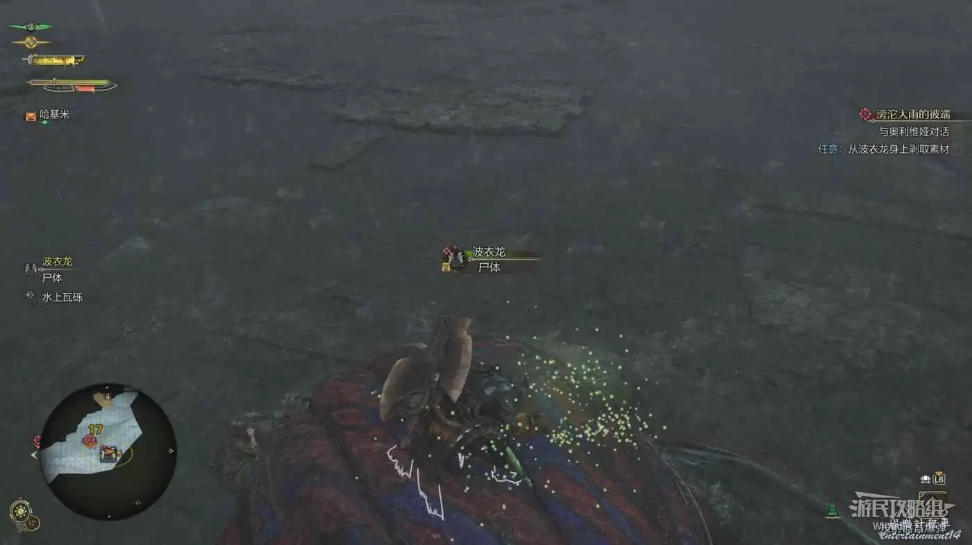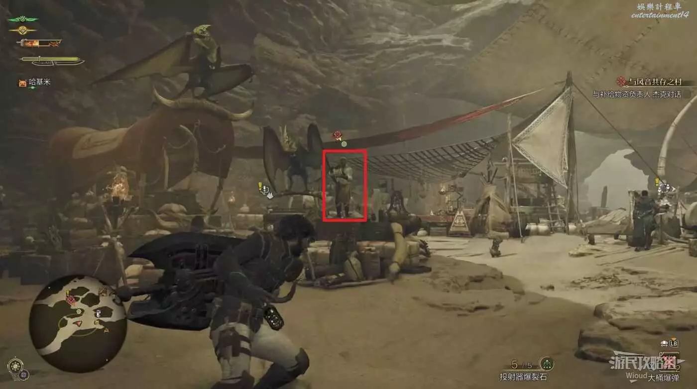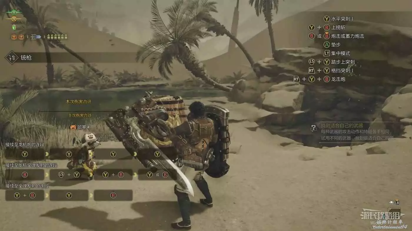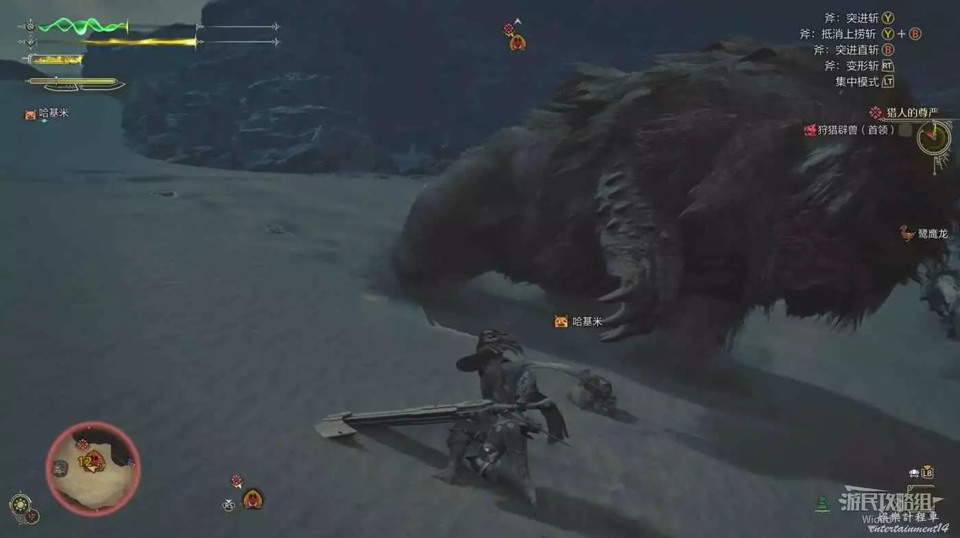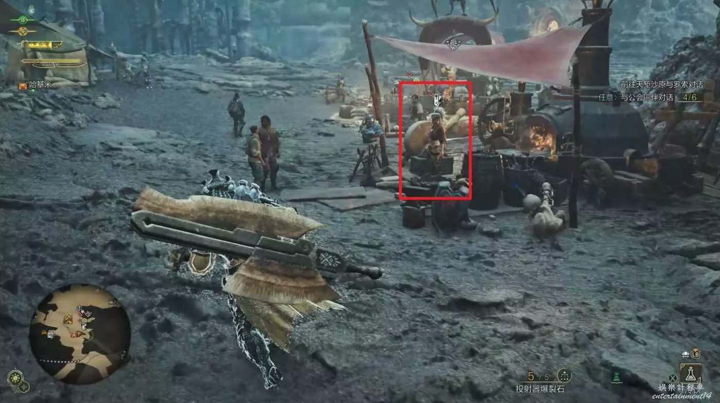 當玩家第一次乘船來到封禁之地的沙漠地區時看到一個被一群沙海龍襲擊的女孩,跳下去開始第一次狩獵。