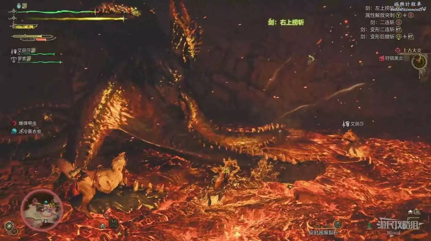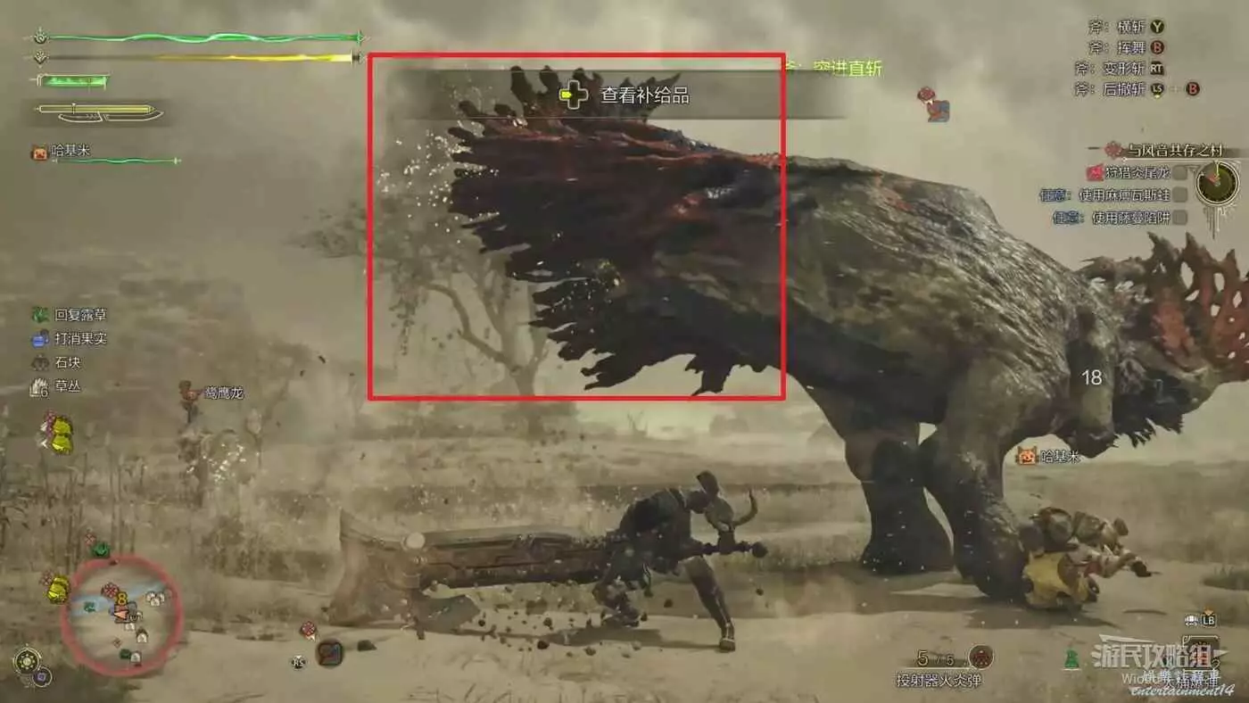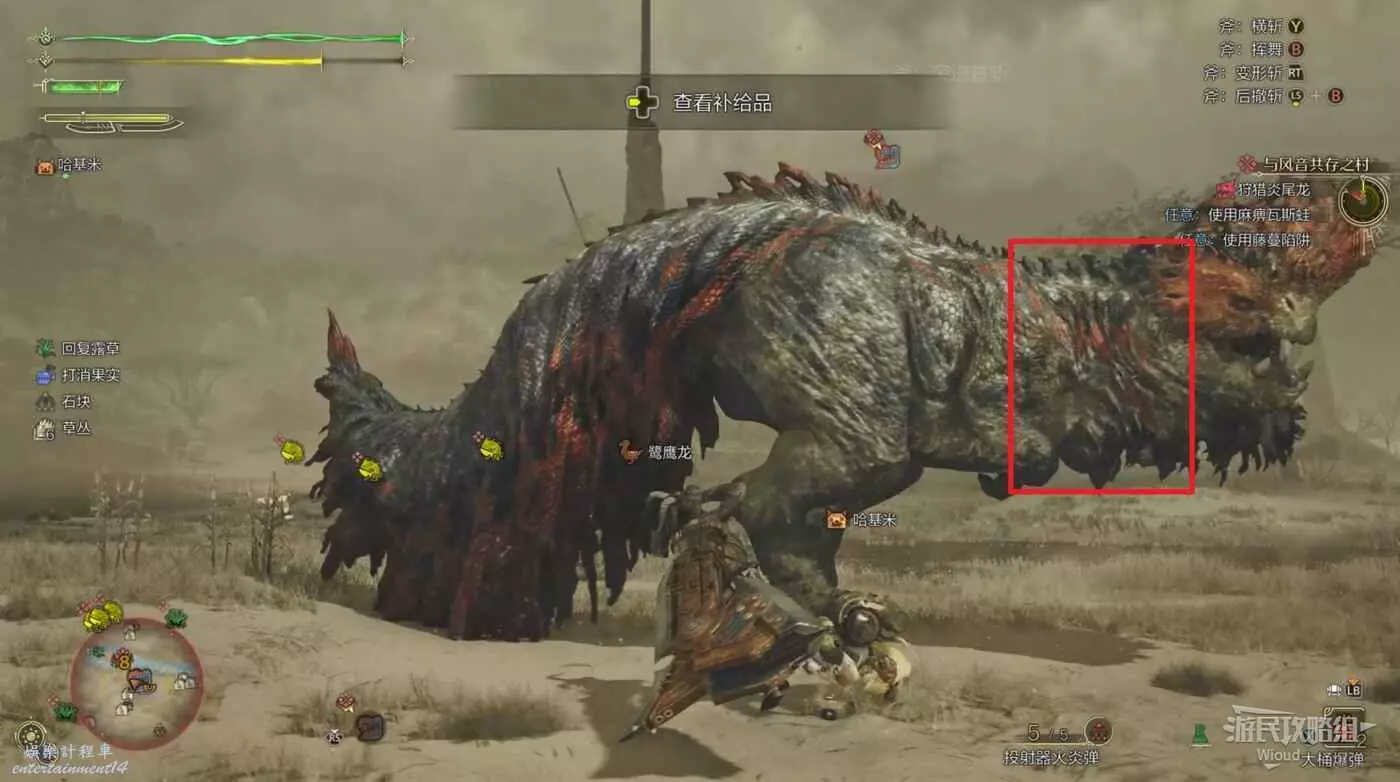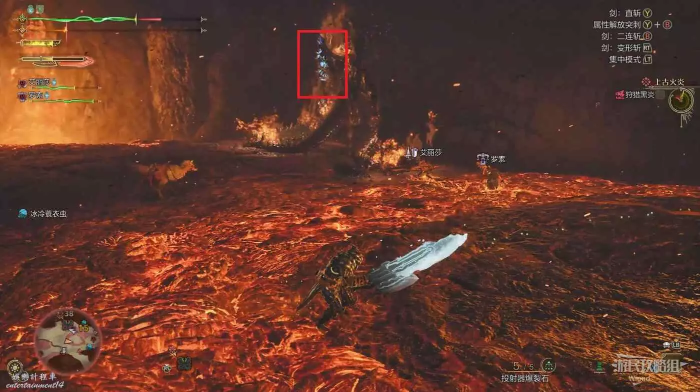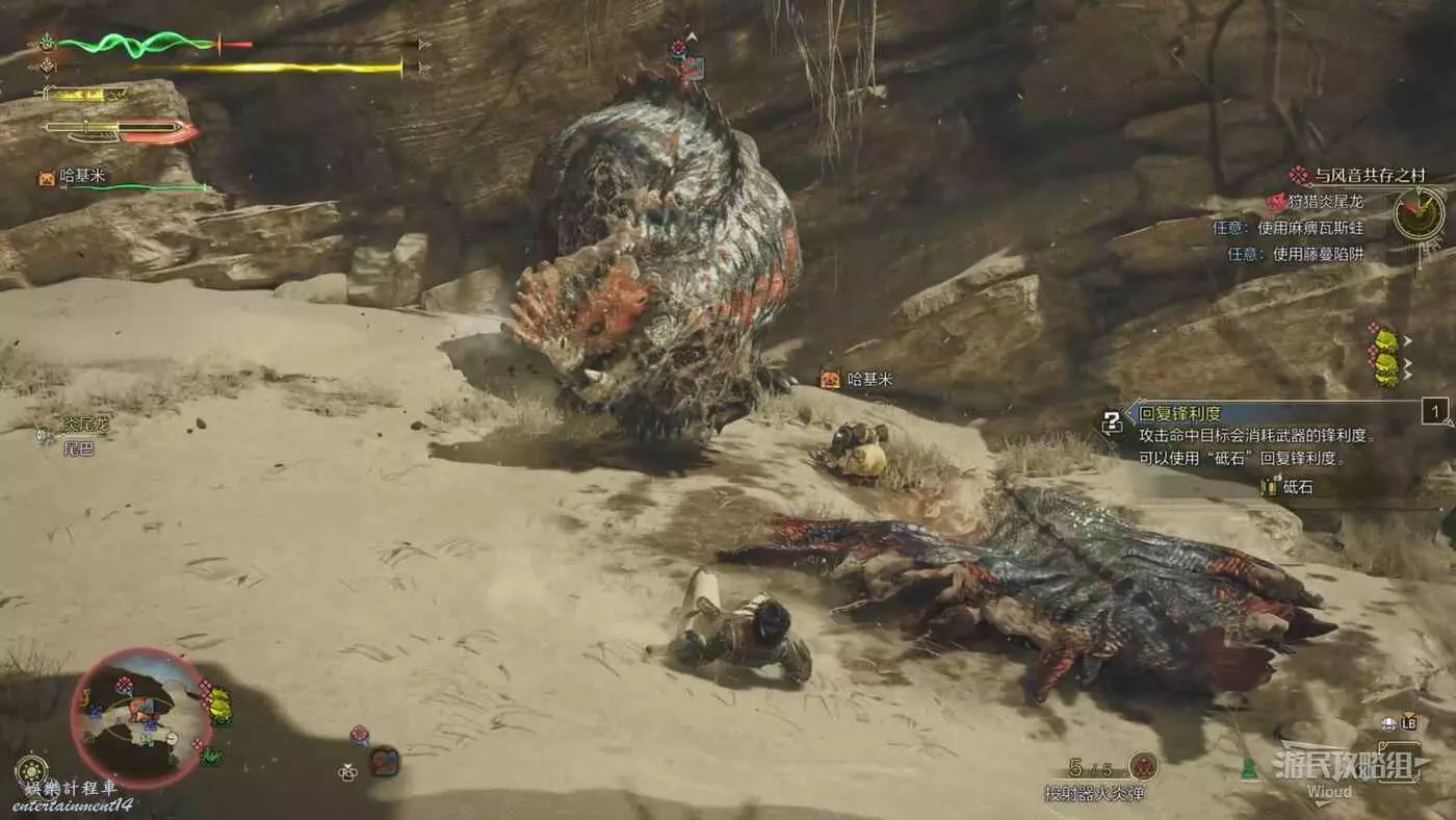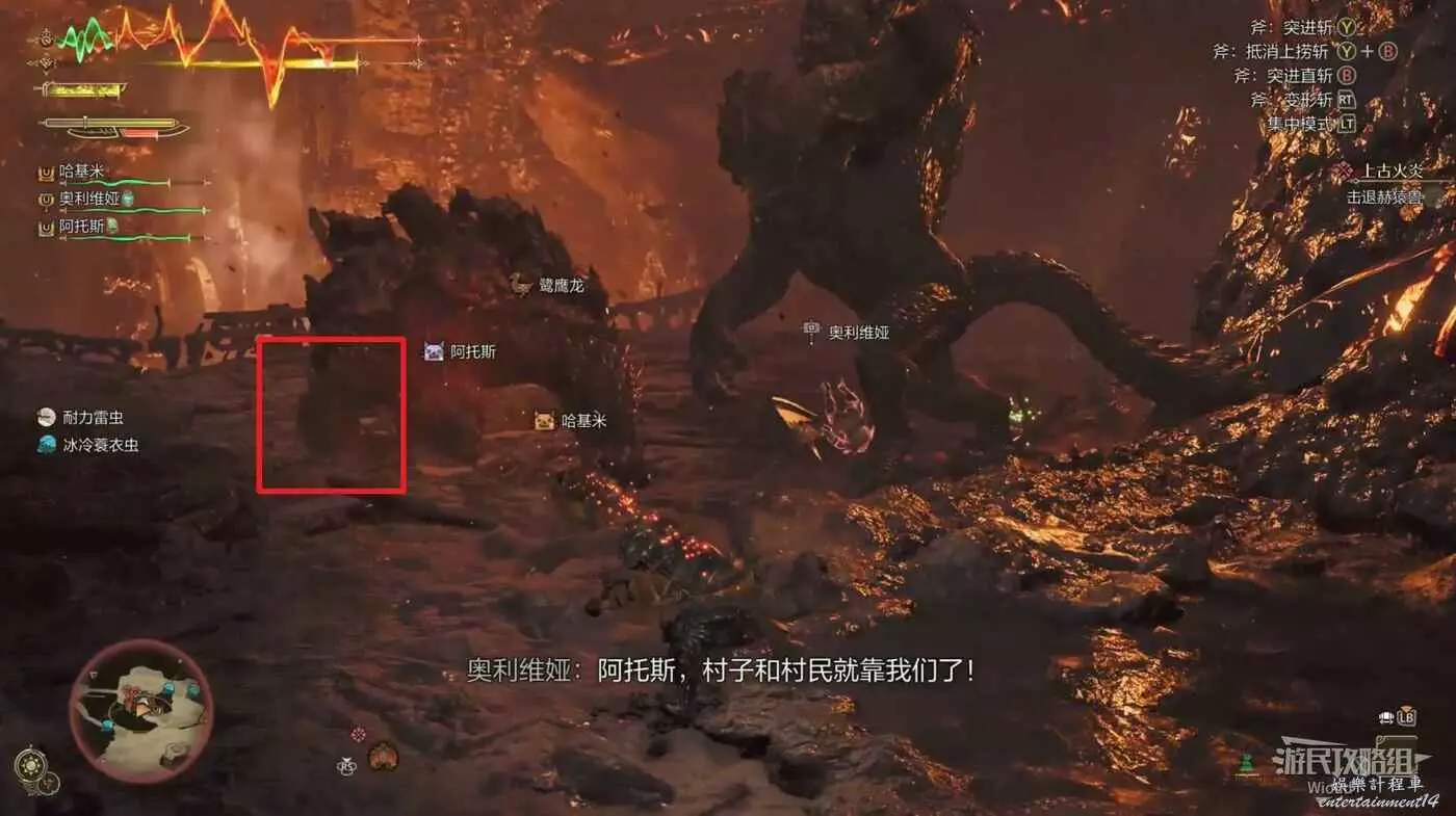 跟隨提示將導蟲放出來,跟隨綠色的導蟲指引一路前往救援位置擊敗炎尾龍。