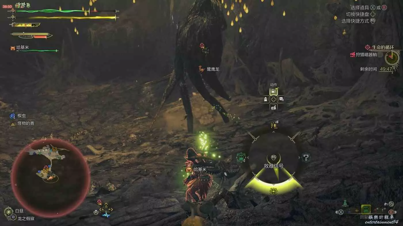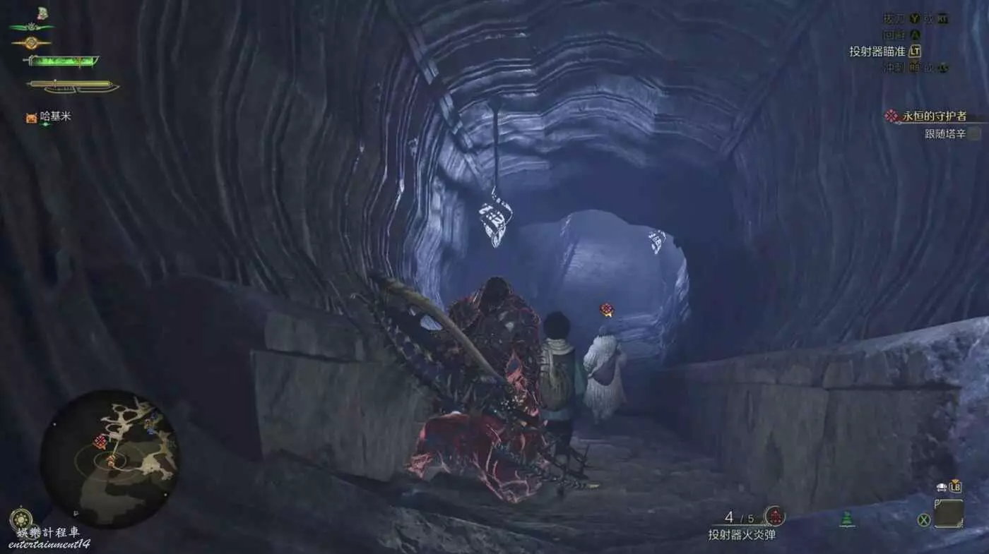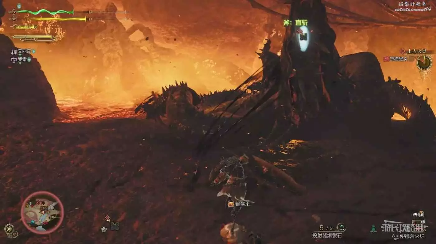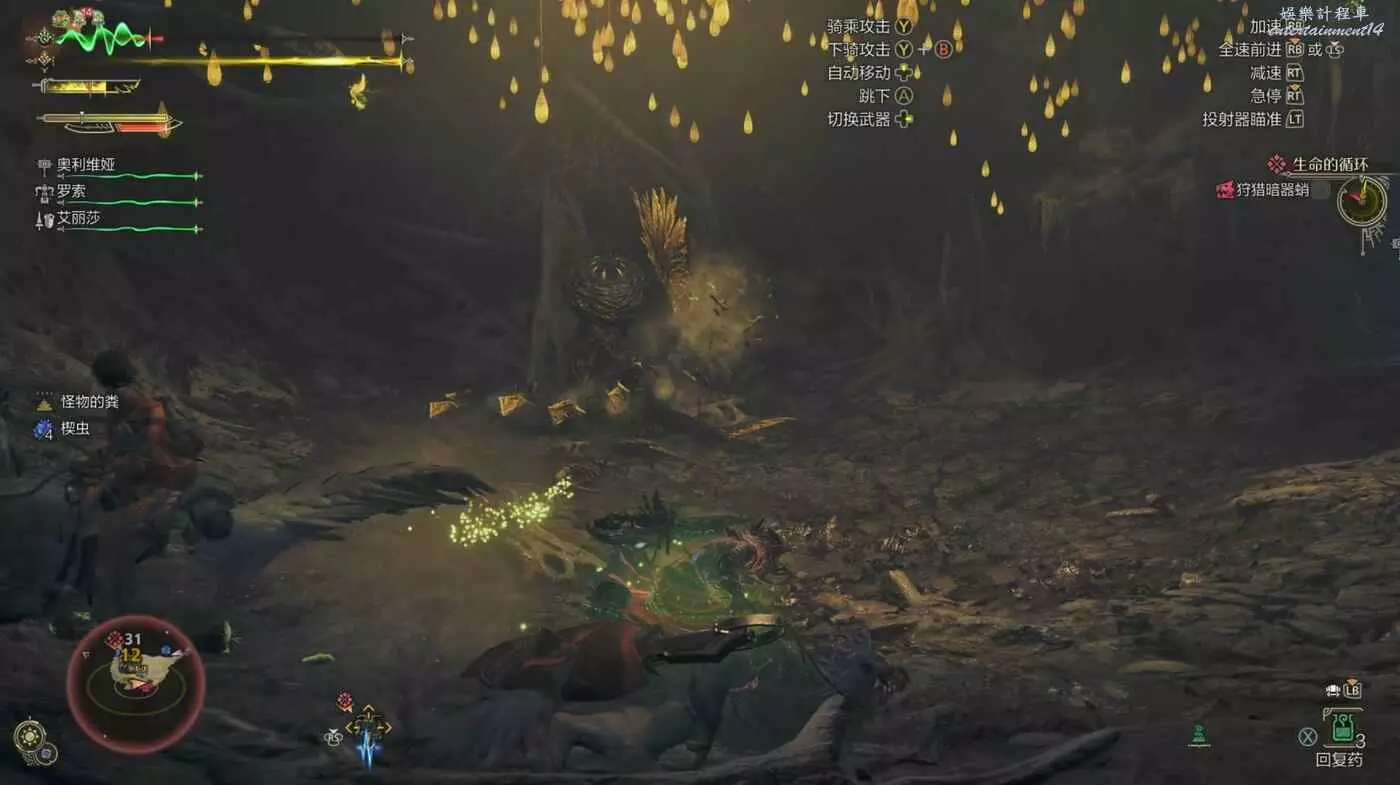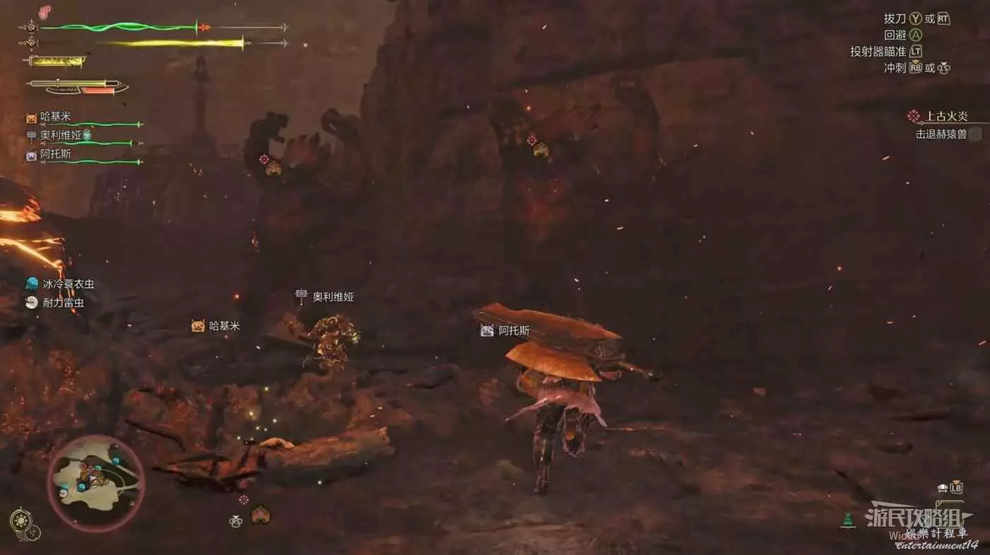 跟隨提示將導蟲放出來,跟隨綠色的導蟲指引一路前往救援位置擊敗炎尾龍。