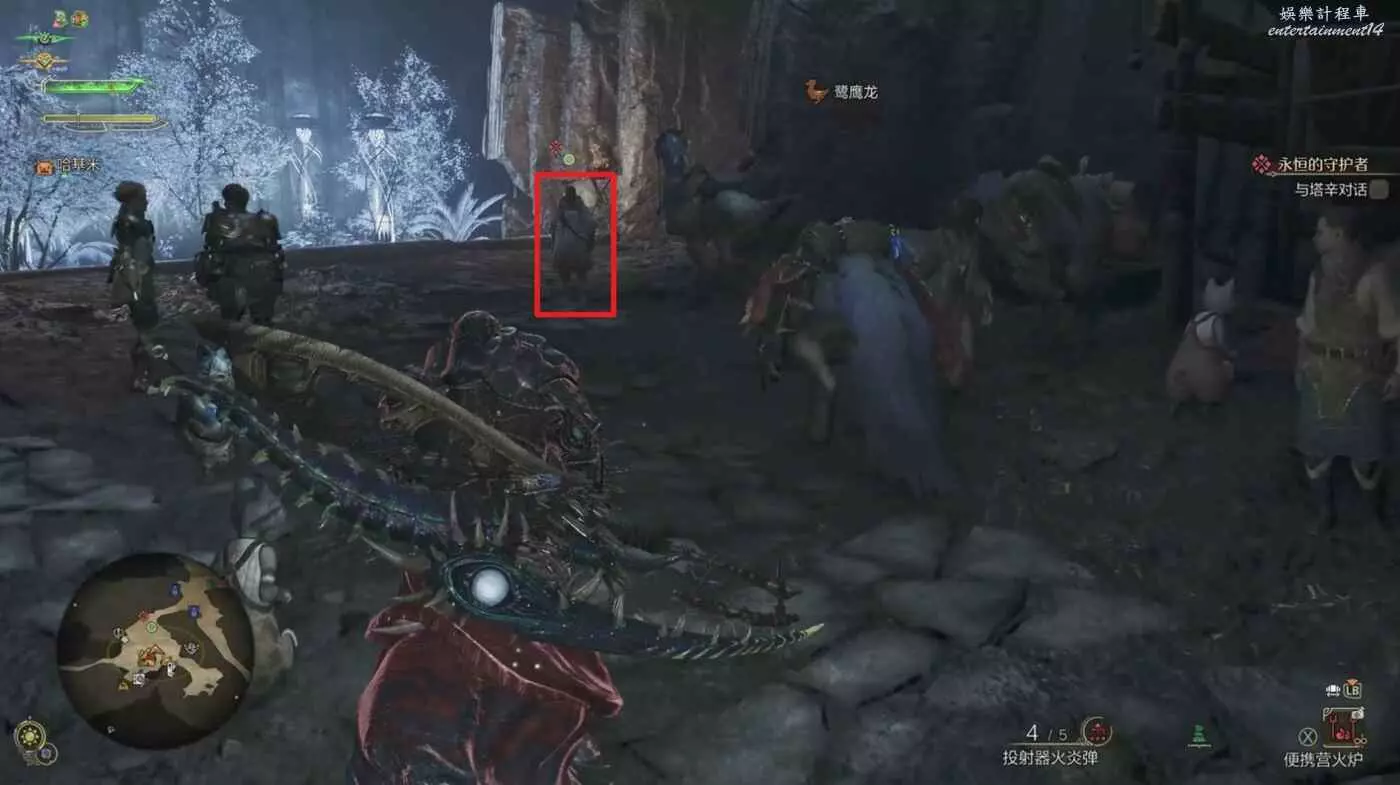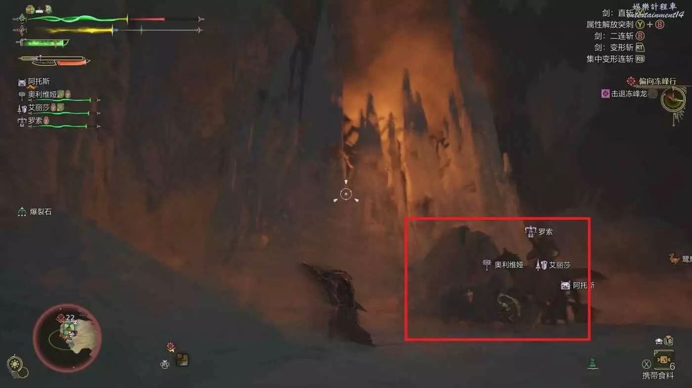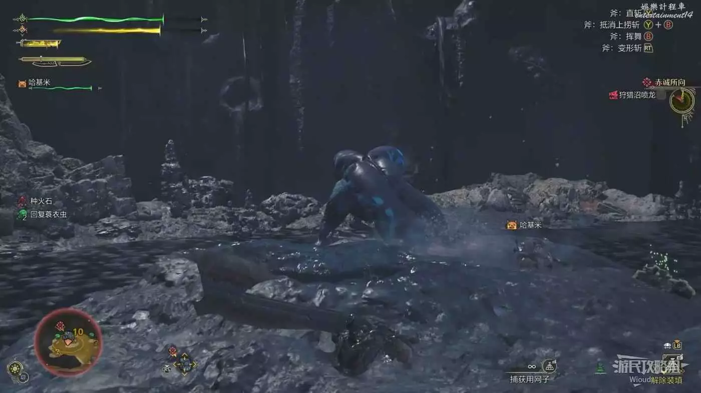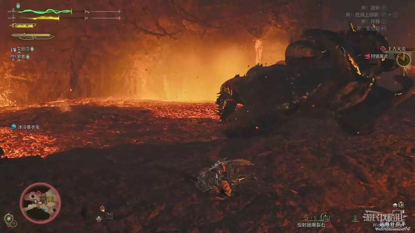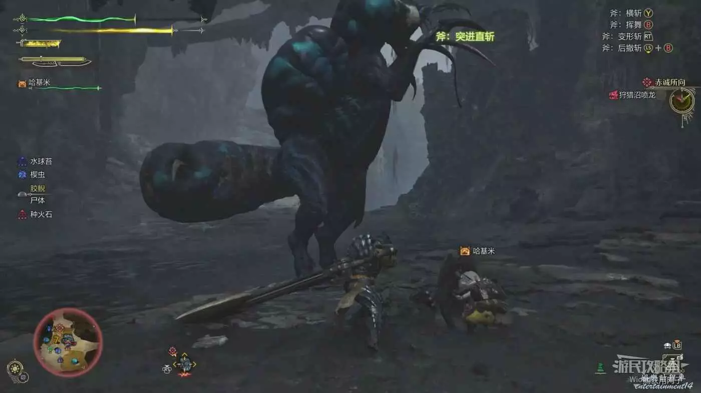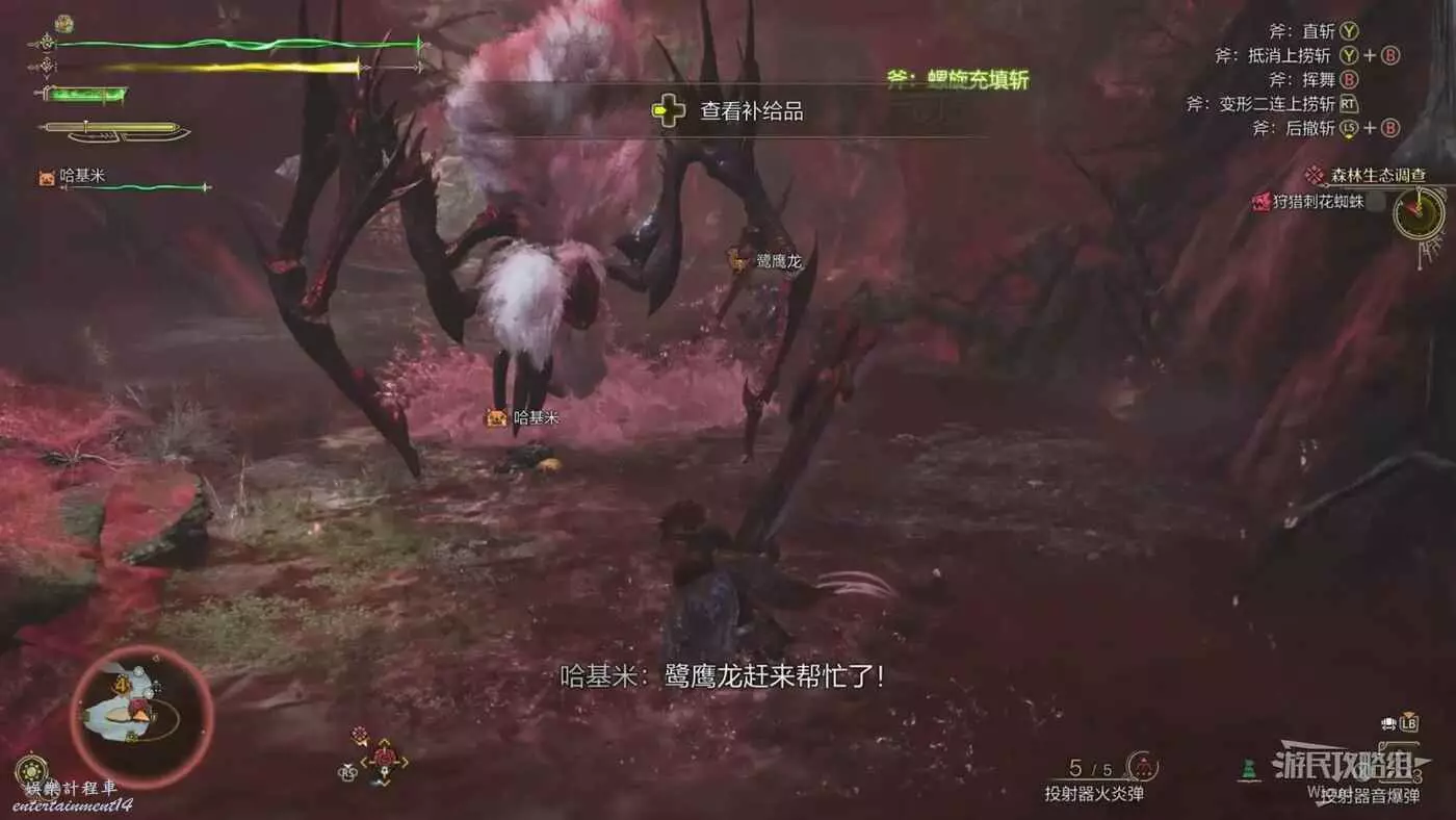 跟隨提示將導蟲放出來,跟隨綠色的導蟲指引一路前往救援位置擊敗炎尾龍。