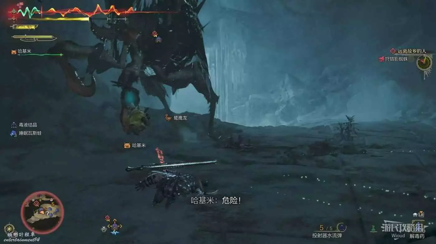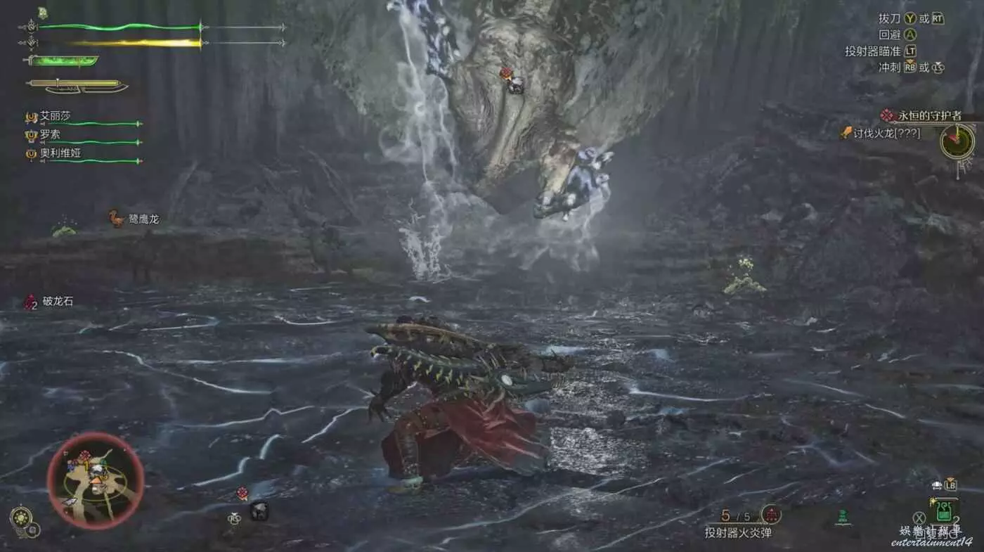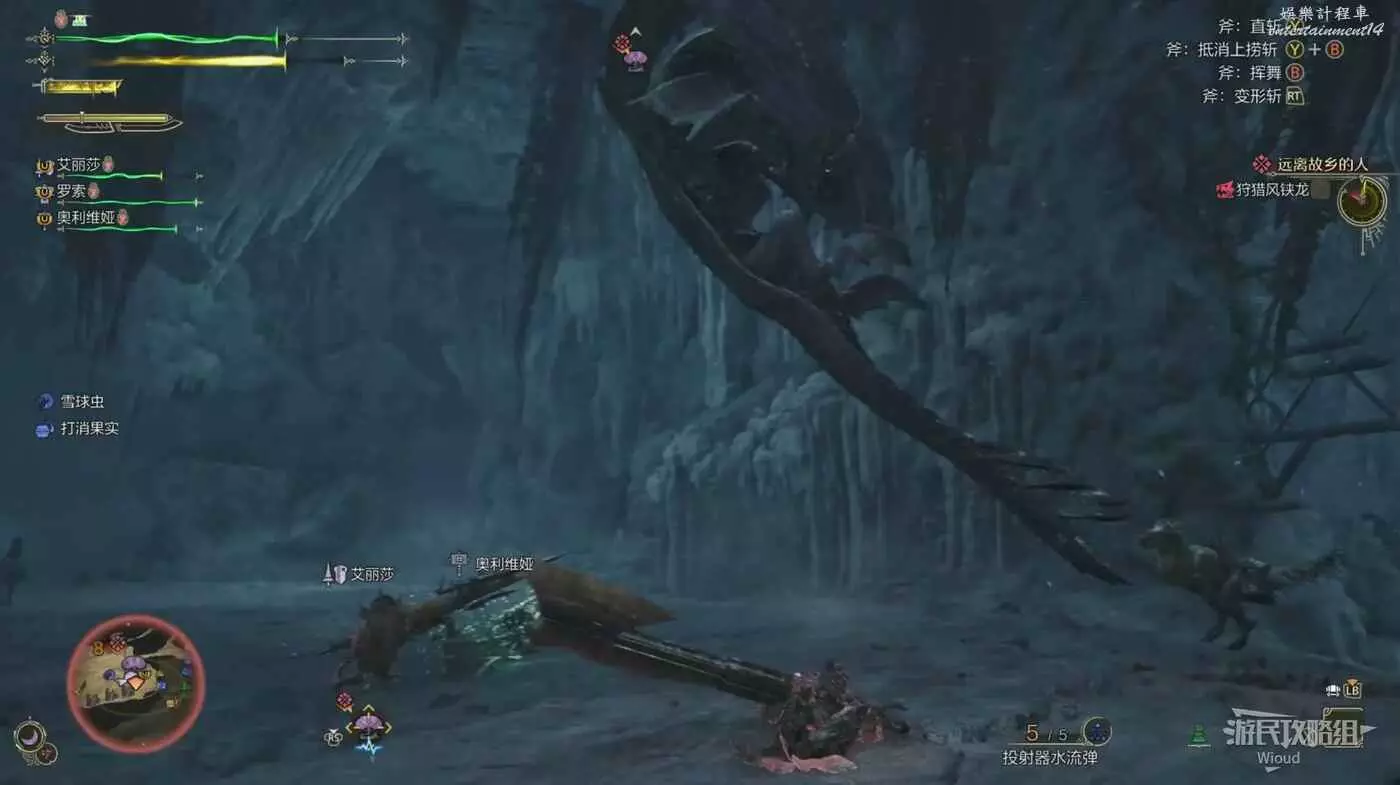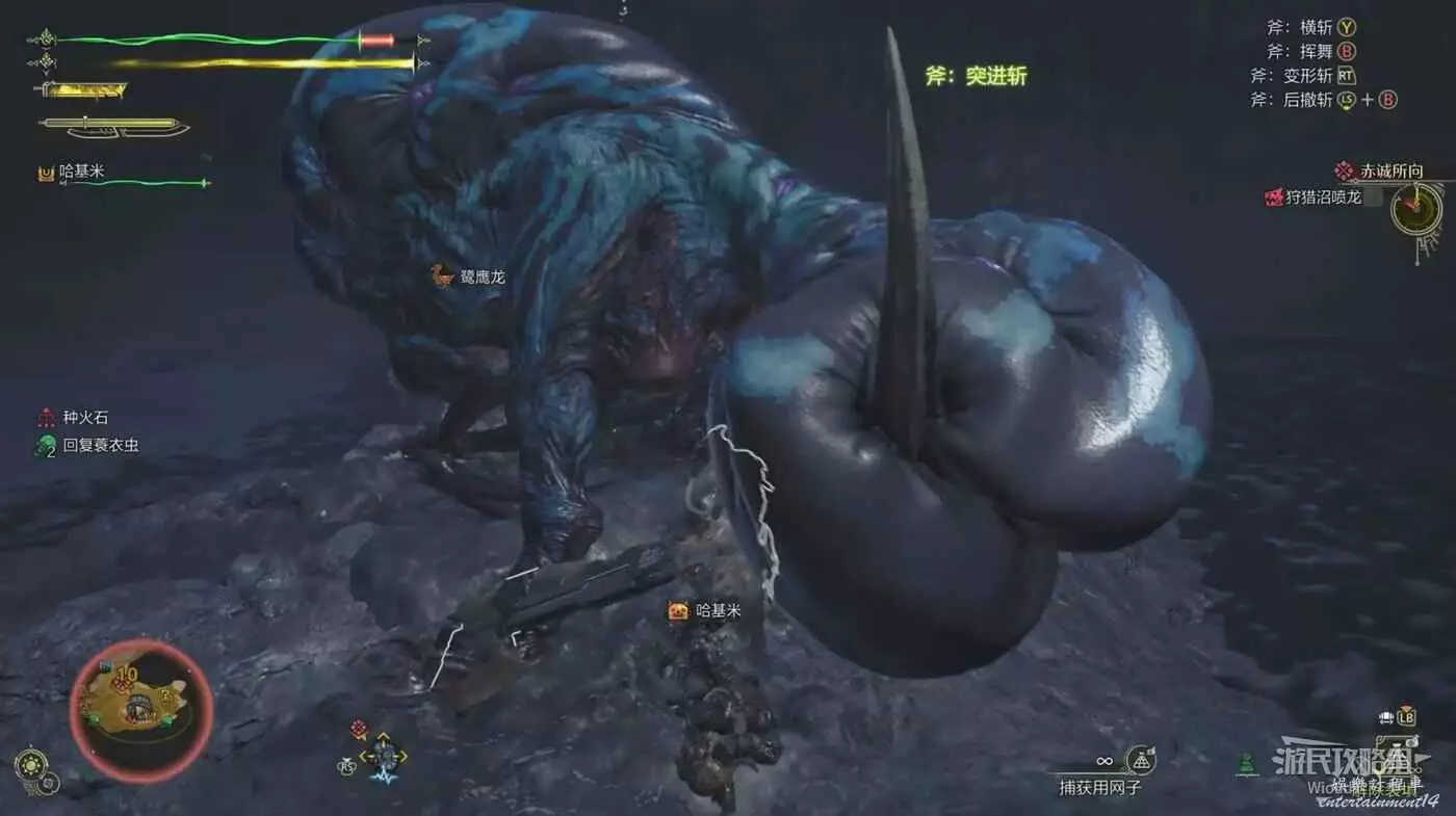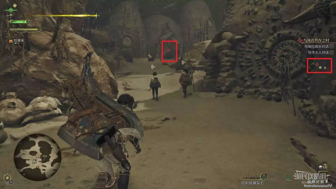 跟隨提示將導蟲放出來,跟隨綠色的導蟲指引一路前往救援位置擊敗炎尾龍。