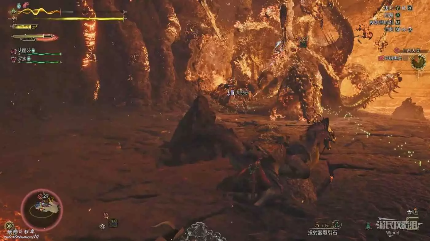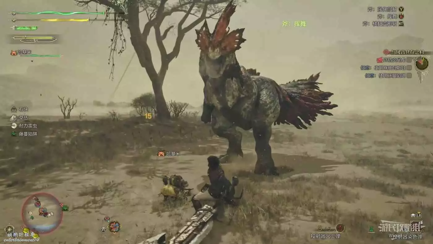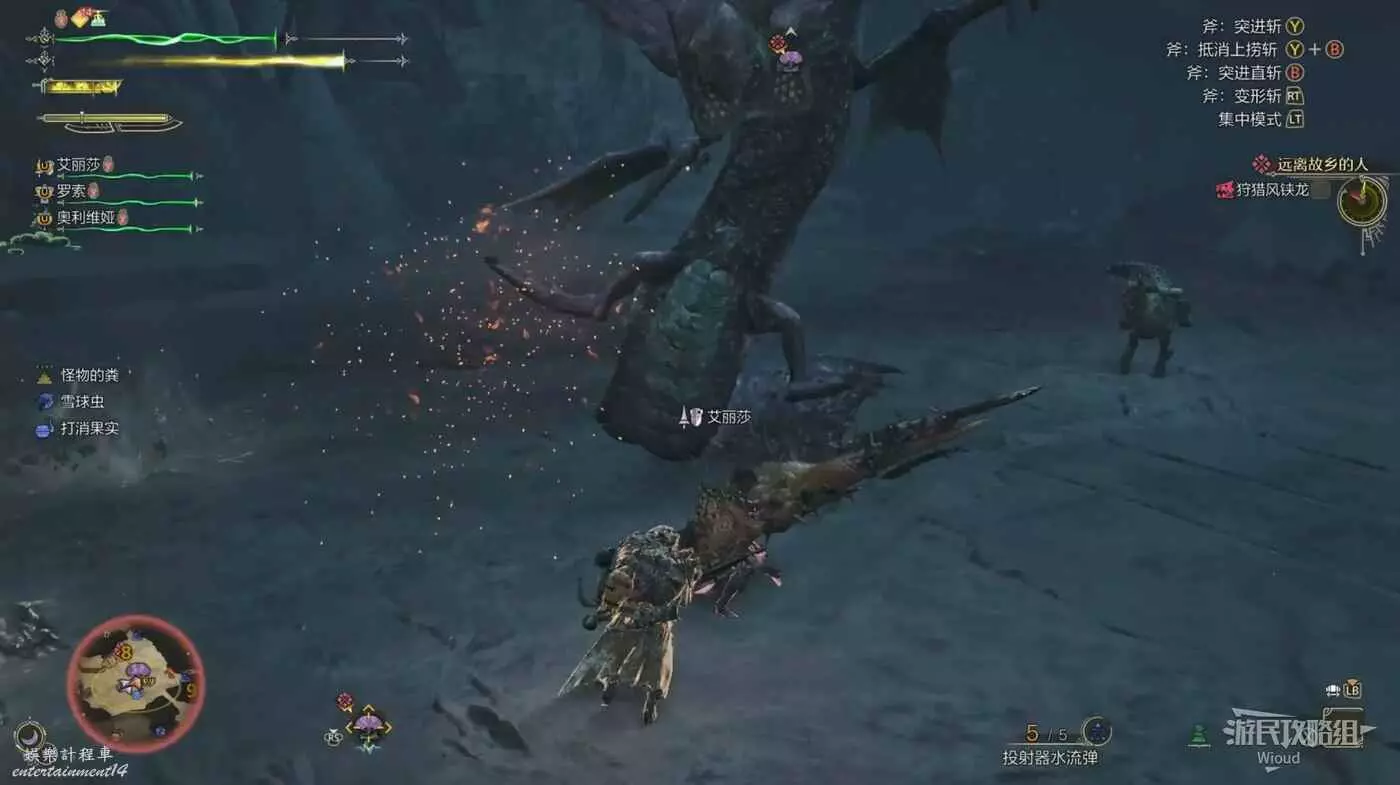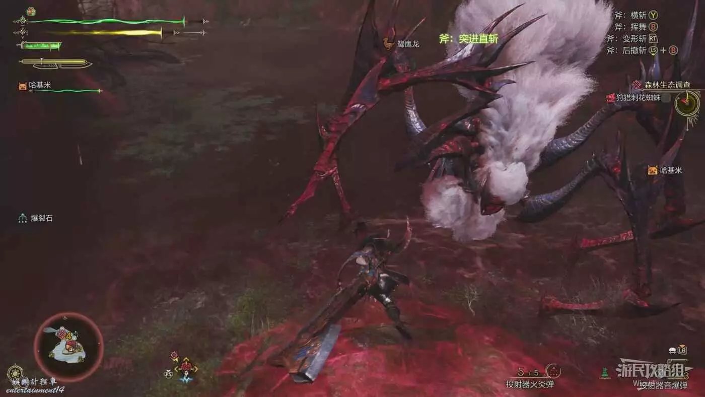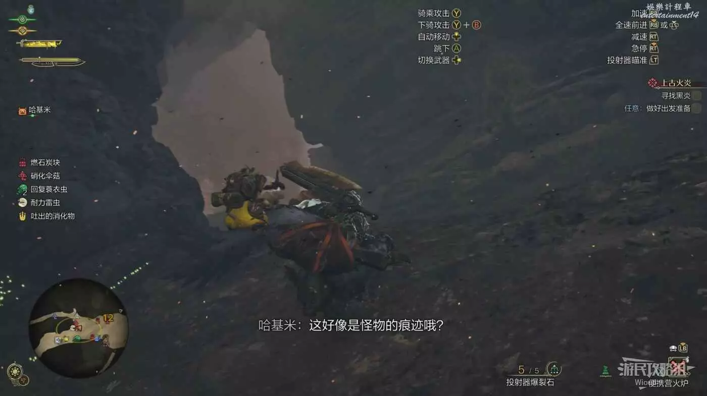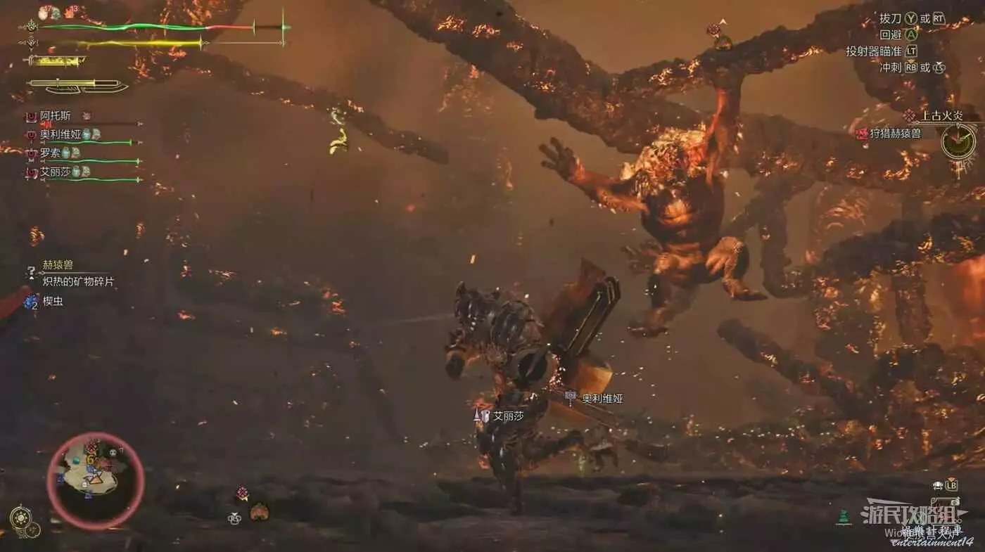 跟隨提示將導蟲放出來,跟隨綠色的導蟲指引一路前往救援位置擊敗炎尾龍。
