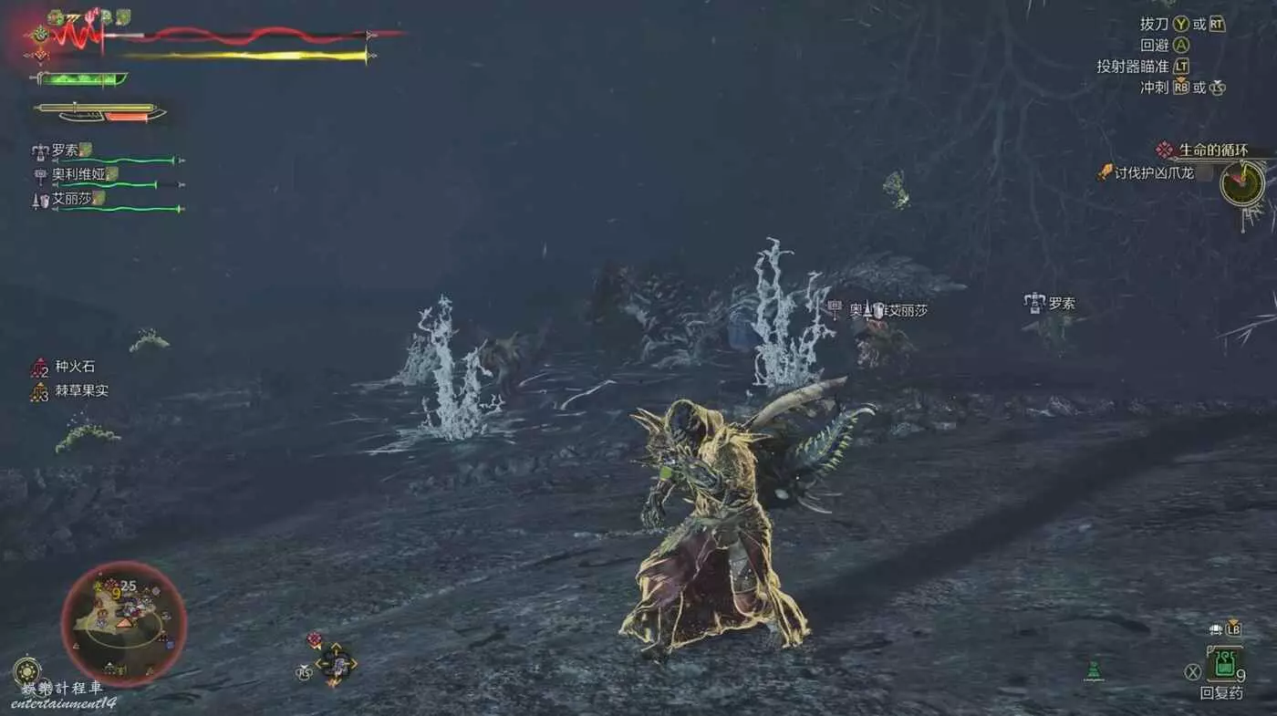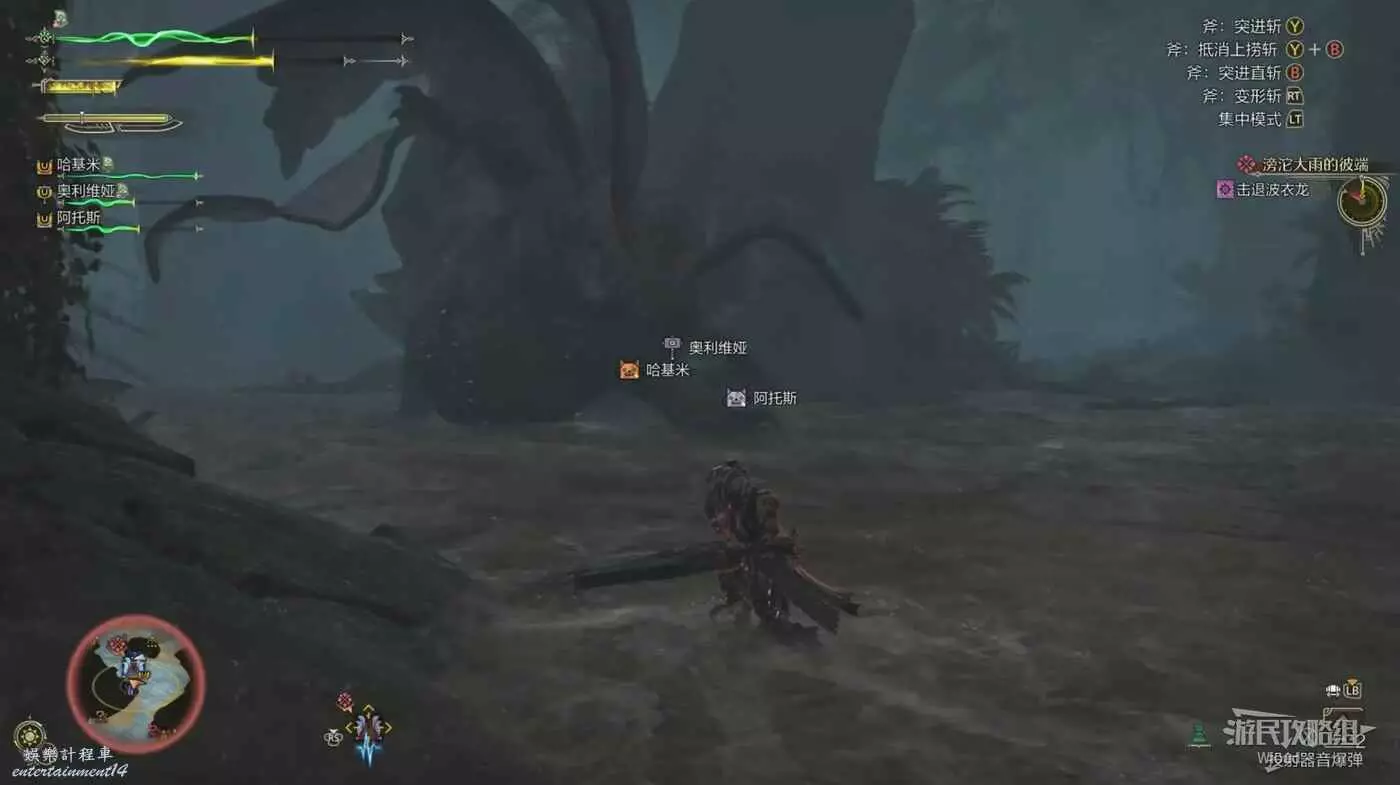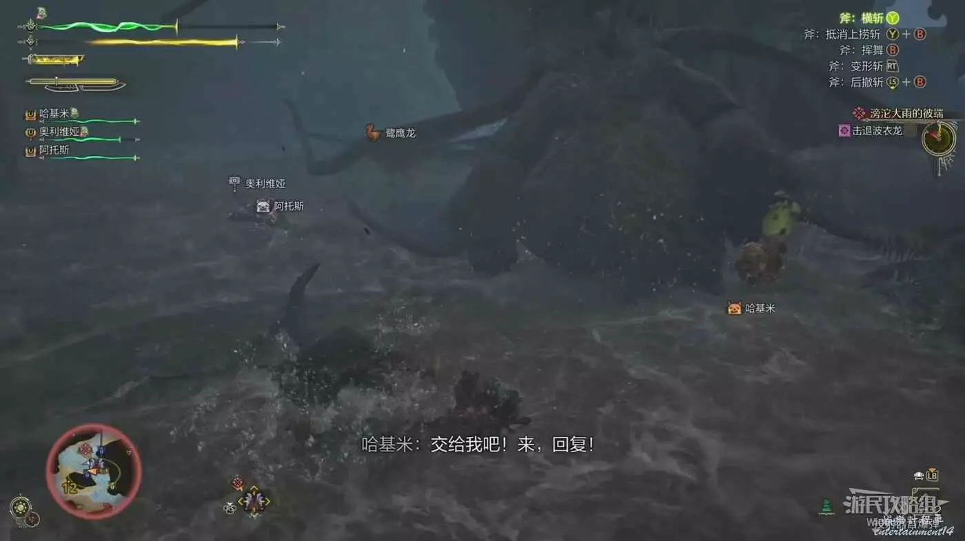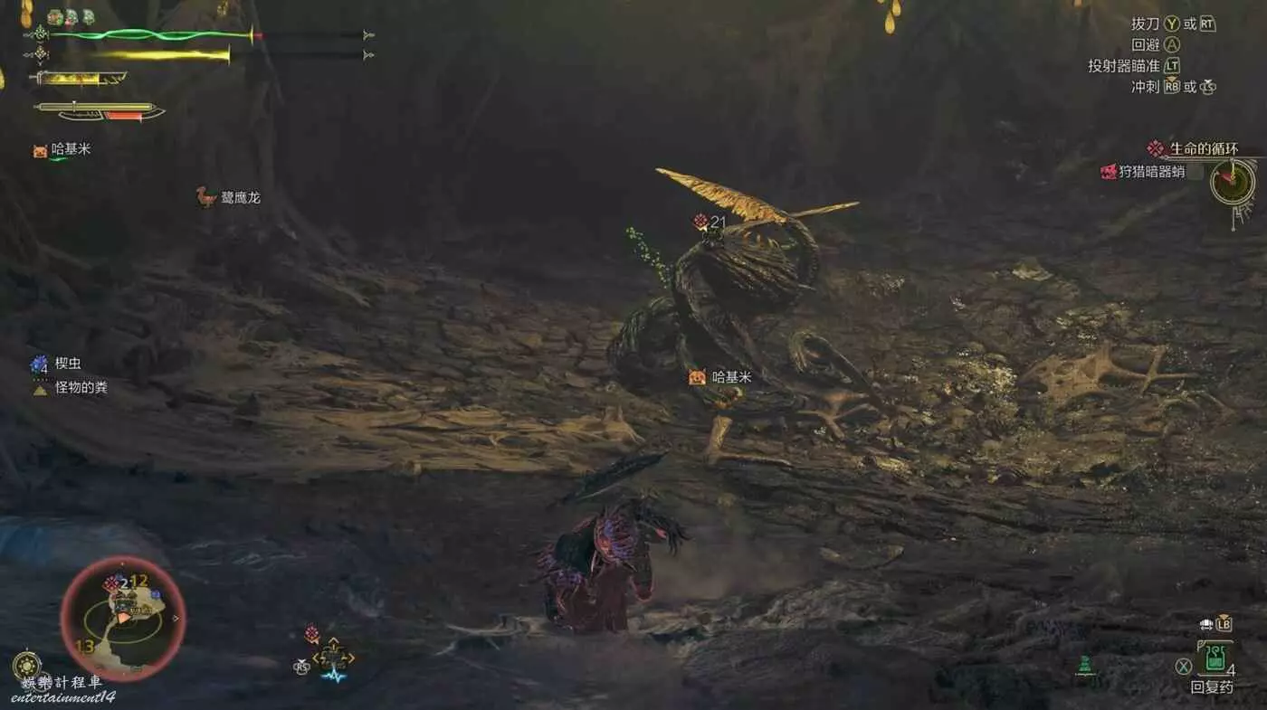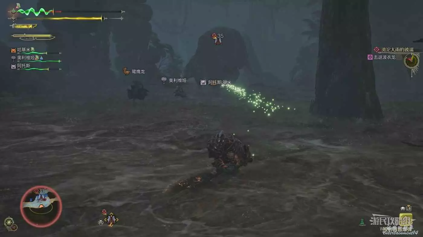跟隨提示將導蟲放出來,跟隨綠色的導蟲指引一路前往救援位置擊敗炎尾龍。