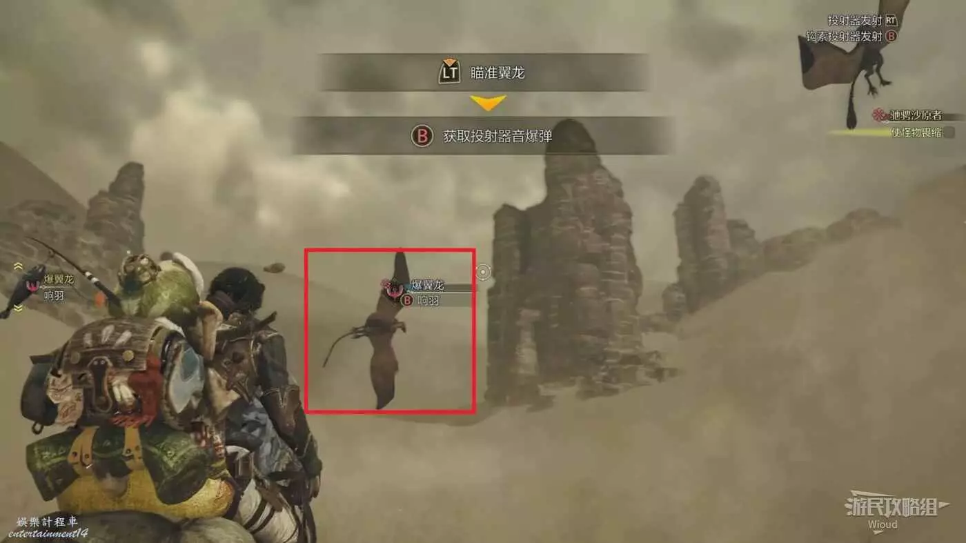 通過投射器瞄準高空的翼龍,當翼龍身上出現圖示時按下對應按鍵,獲得投影器爆彈。