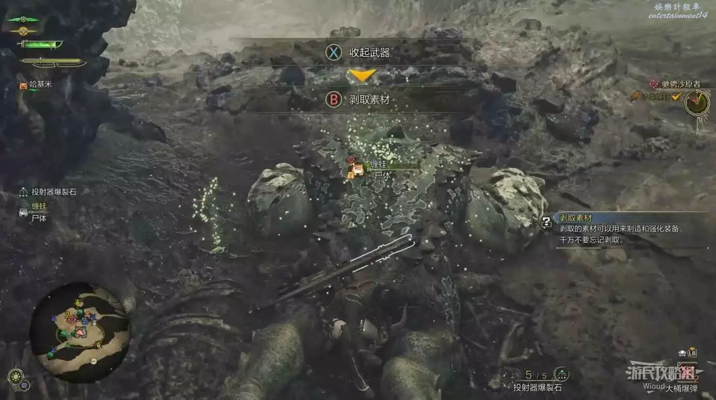 而纏蛙的兩個前肢是可被破壞的部位,破壞部位後可以獲得最稀有的素材【纏蛙的纏甲】,正常擊敗只有15%的幾率可以獲得。