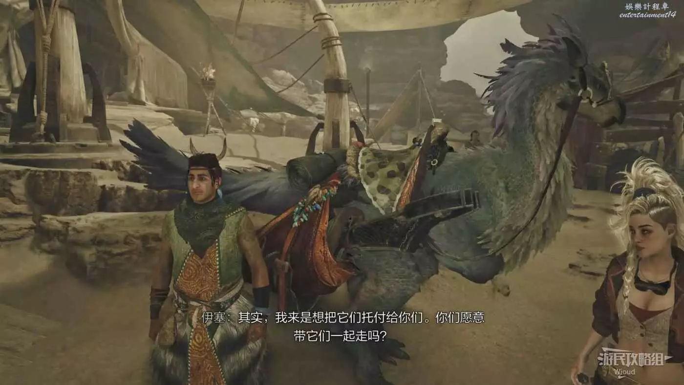 成功擊敗炎尾龍後,伊賽會再次來到沙漠的大本營與我們對話,此時他會將坐騎正式交給我們騎乘。