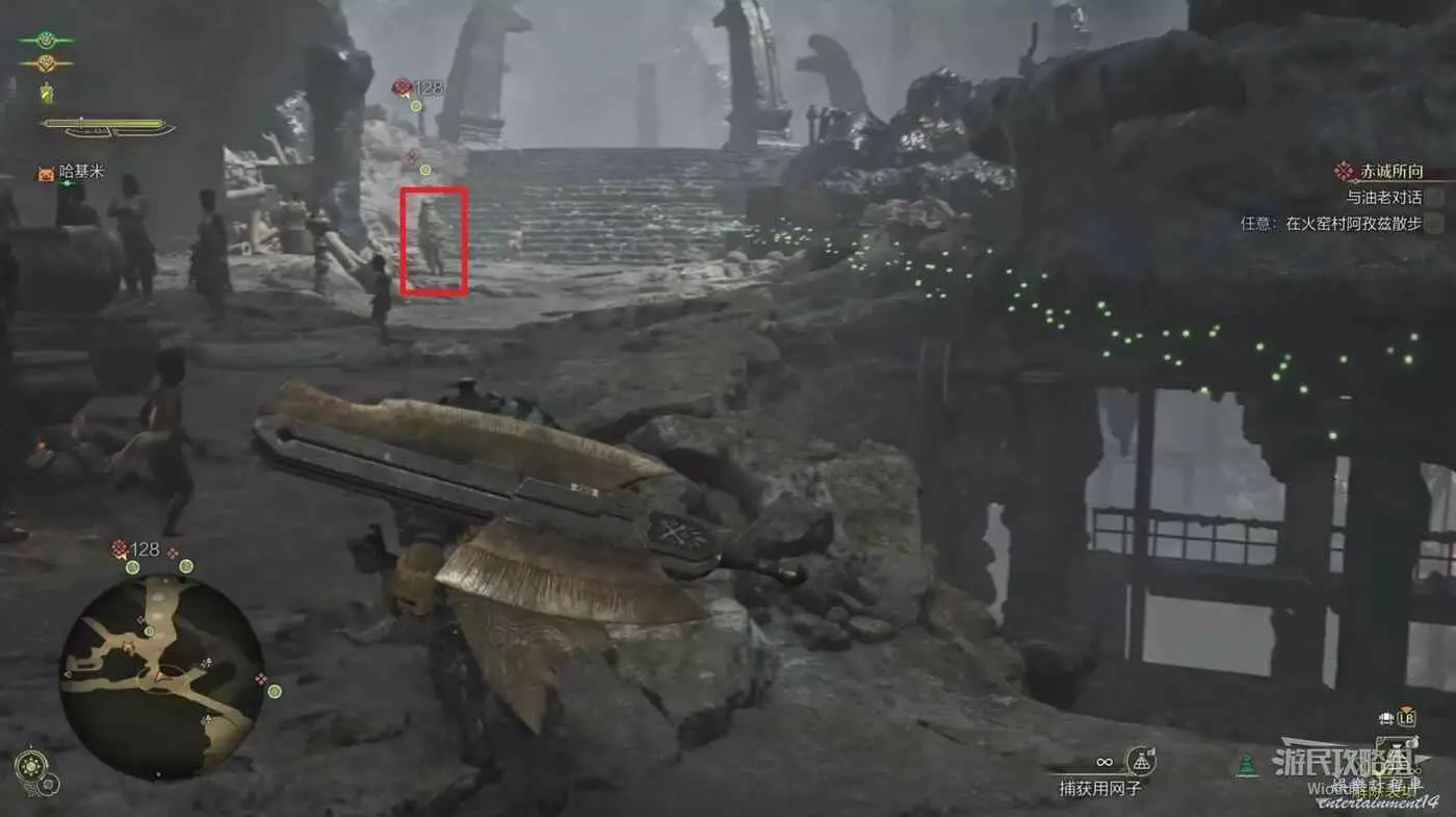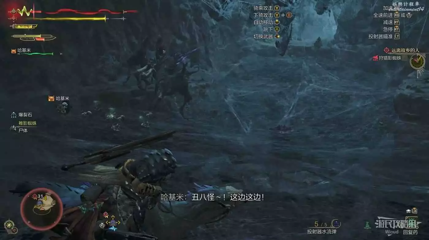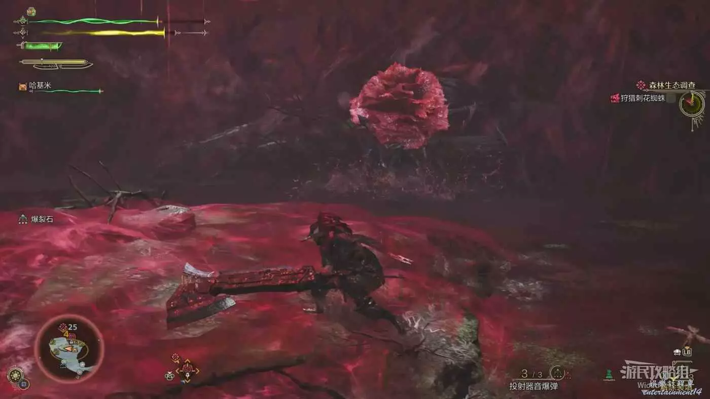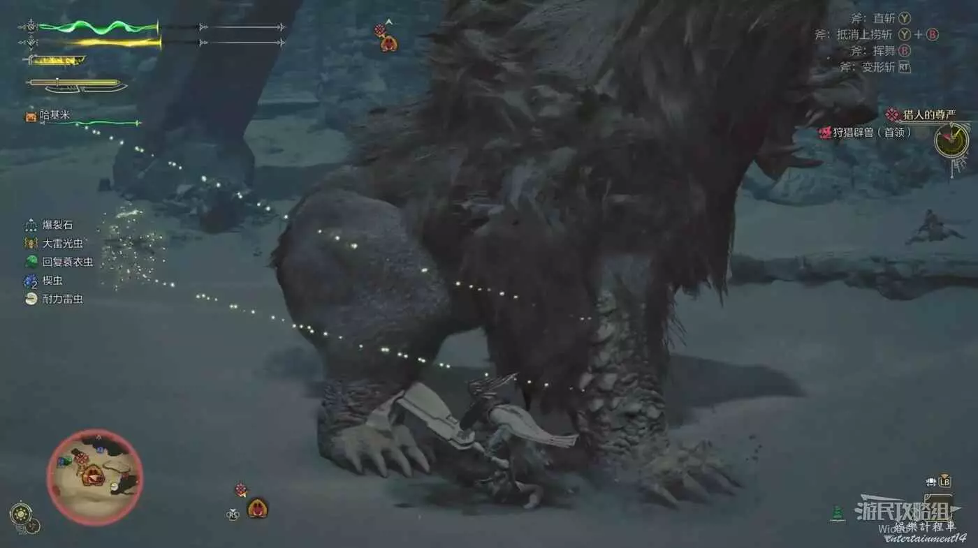 到達第一個目的地觸發劇情,然後繼續跟著指引搜索辟獸的蹤跡,路上會見到不少辟獸的毛,不遠處再次觸發劇情,艾瑞克被刺花蜘蛛抓住,過完劇情開啟與刺花蜘蛛的戰鬥。