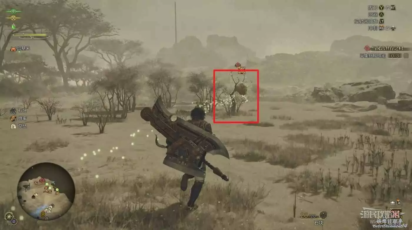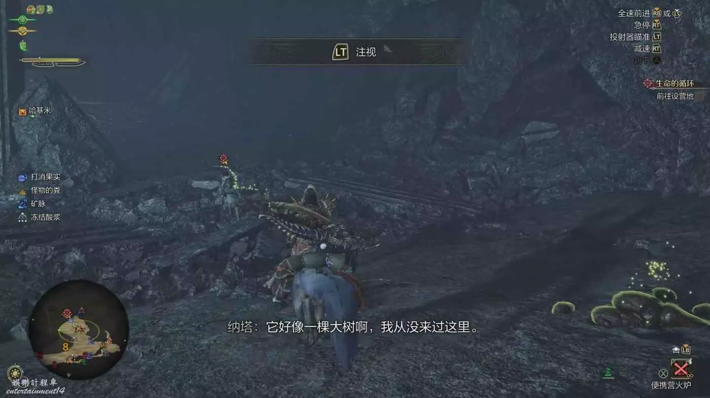 路程中間我們需要注意的是螢幕左側顯示的材料,通過左側我們可以直接看到周圍環境有哪些可以拿的素材,通過十字鍵直接選擇此材料可以直接勾過來。